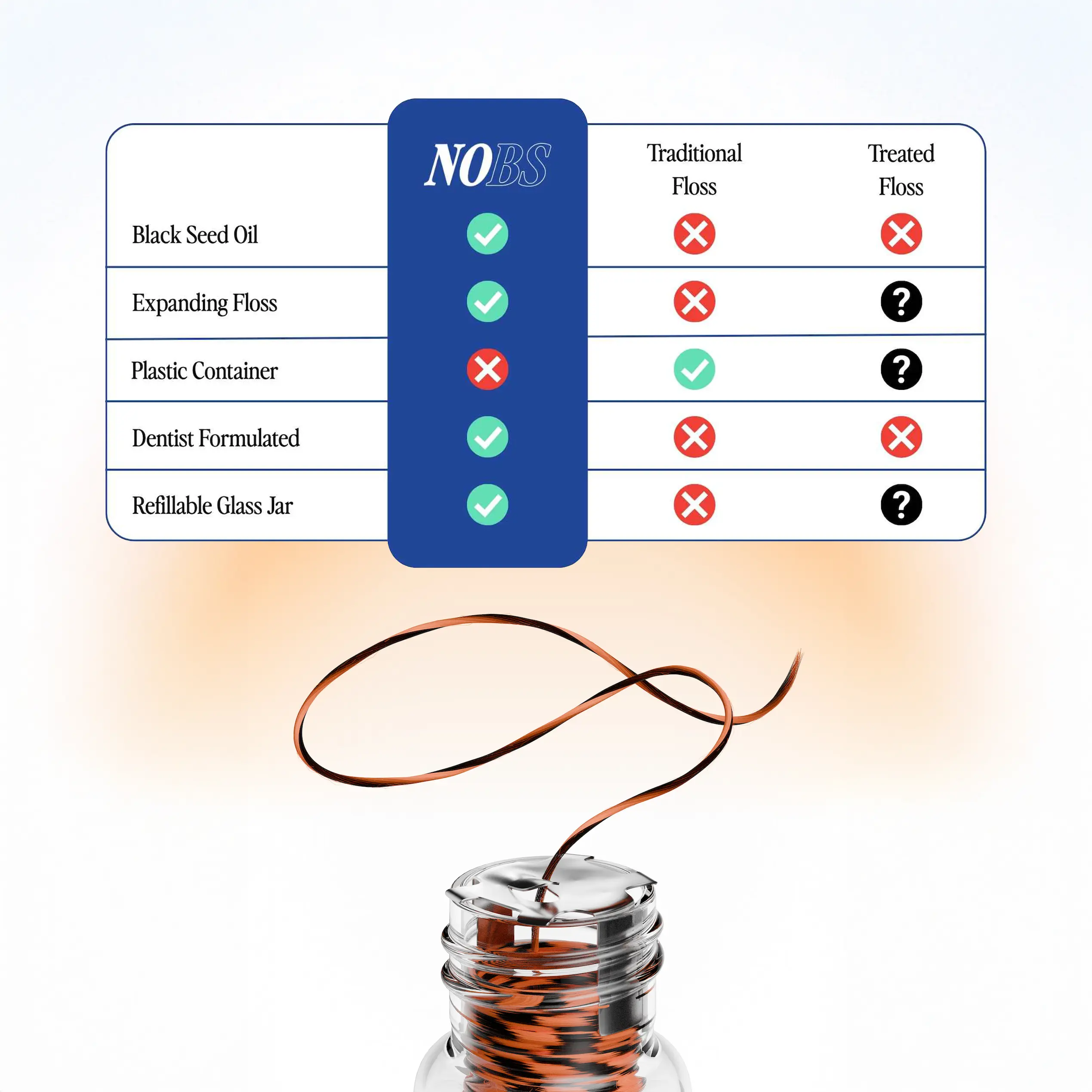 Silk Expanding Floss: Not your average floss. It gently expands between teeth for a deep clean, infused with nigella sativa and eucalyptus for antimicrobial support, gum health, and a fresh, minty finish. Comes in a sleek glass jar to keep your floss eco-friendly and toxin-free.