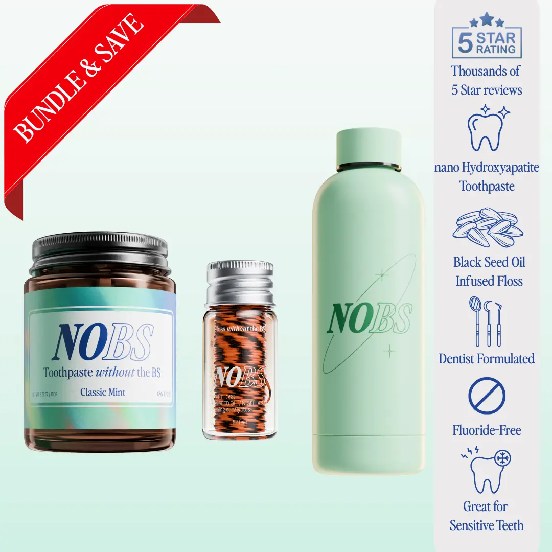 NOBS Toothpaste + Herbal Mouthwash + Expanding Floss Bundle