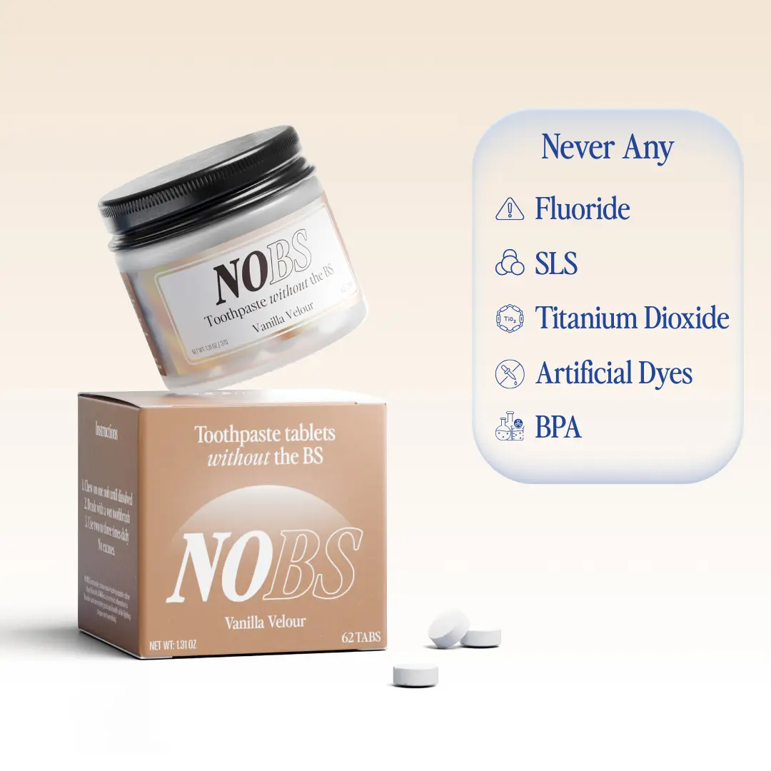 Never any fluoride, and no harsh abrasives. We use the remineralizing power of nano-hydroxyapatite to protect your teeth long-term. It's the safest alternative to fluoride! Unlike messy tube toothpaste, NOBS are easy to store and use anywhere. Thanks to our unique blend of natural ingredients, NOBS will make your breath as fresh as you look. Instead of gross sweeteners that cover up a natural slightly bitter aftertaste, our organic mint will leave you so kissable. Trust us, your date will thank you.