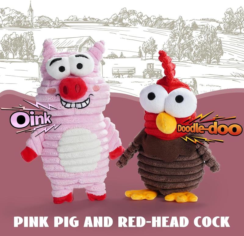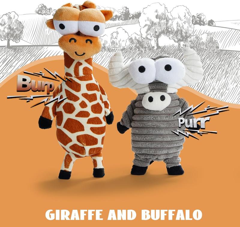 ·Diverse Playtime: This set includes five charming dog toys - Red-head Cock, Pink Pig, Giraffe, Buffalo, and Mallard. Each toy is thoughtfully designed with a unique built-in squeaker, ensuring a variety of engaging sounds for your playful pup.