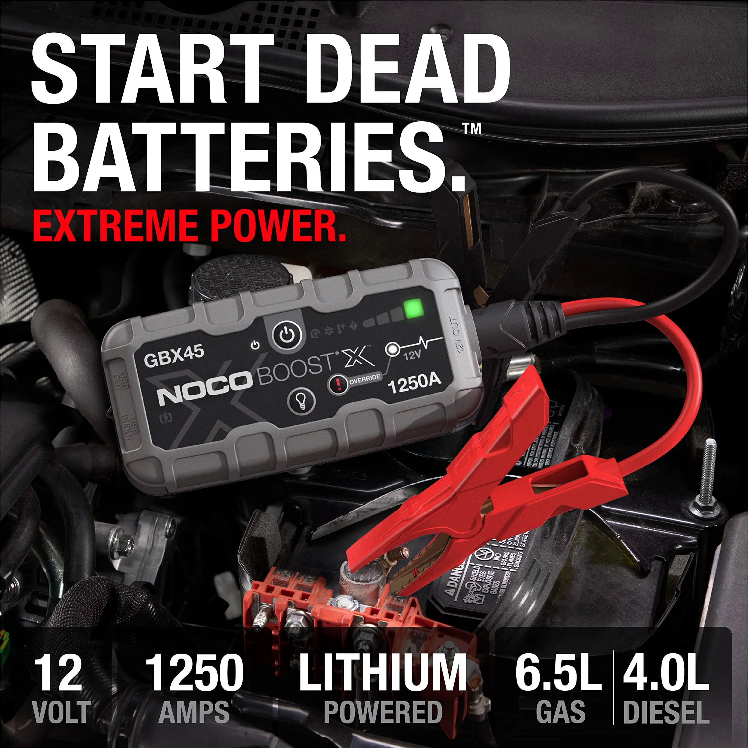 X for Extreme - An all-new design with extreme jump starting power for powerful engines starts. Rated at 1250-amps, this portable lithium car battery jump starter releases maximum energy at every start. This isn't an upgrade. It's a whole new series - the Extreme Series.