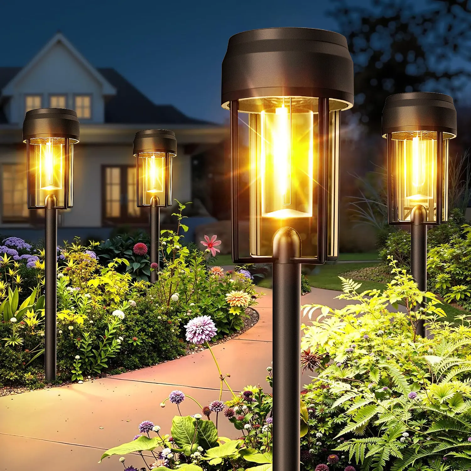 ·【High-performance Solar Panels】The newly upgraded solar pathway light adopts high-quality monocrystalline silicon solar panel, which has a higher conversion of solar energy, up to 30%, compared with other products of the same type. 3000K LED filament creates a romantic atmosphere, place it in your garden, patio, pathway, driveway, etc. and easily impress your friends and neighbors.