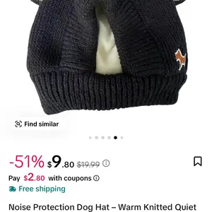 This is the cutest hat. It helps block loud noises, which is good because my pup is scared of thunder and fireworks. Plus she looks adorable!