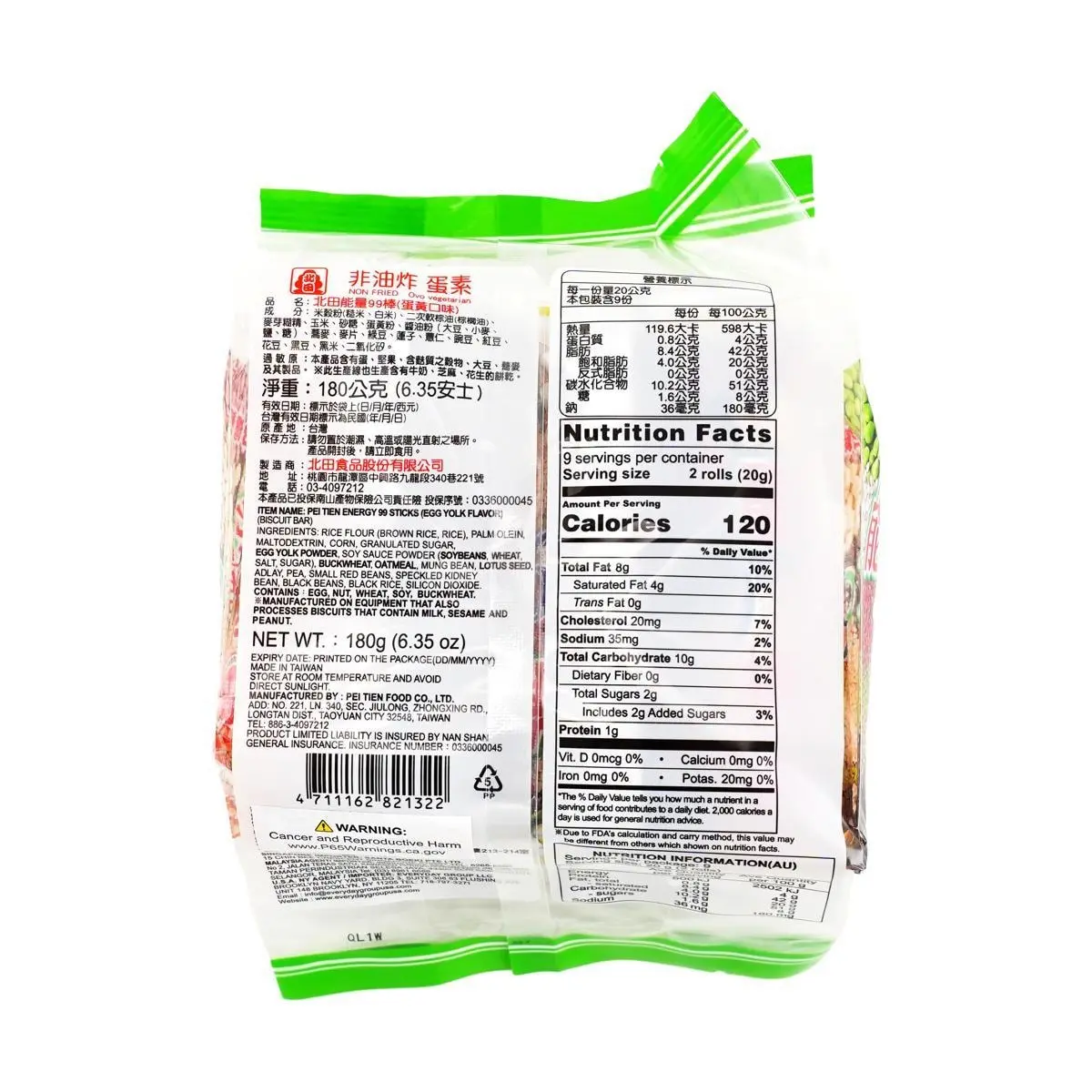 🌟 Discover the delicious taste of Pei Tien's Non-Fried Energy 99 Bars! Perfect for a quick snack or a boost of energy on the go.