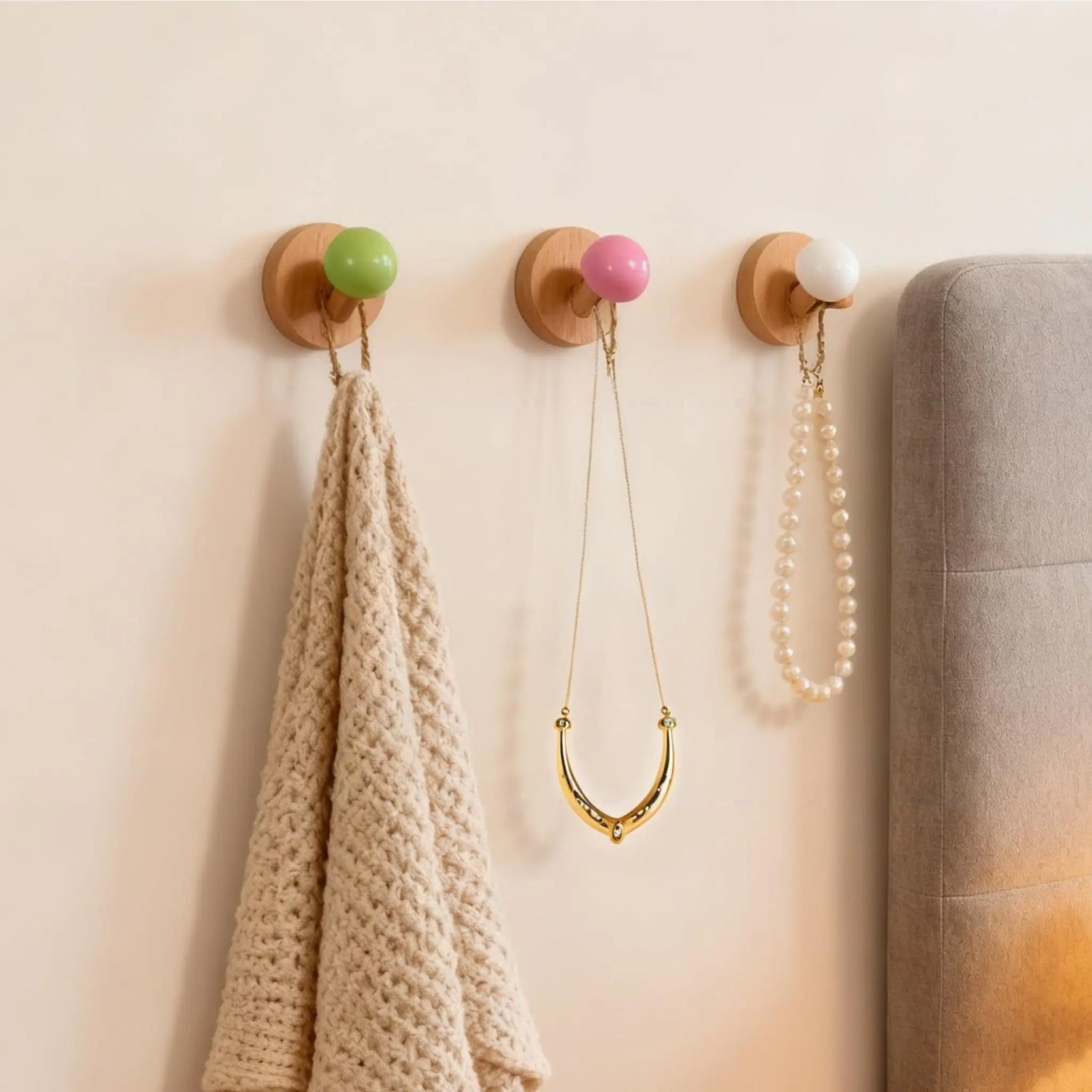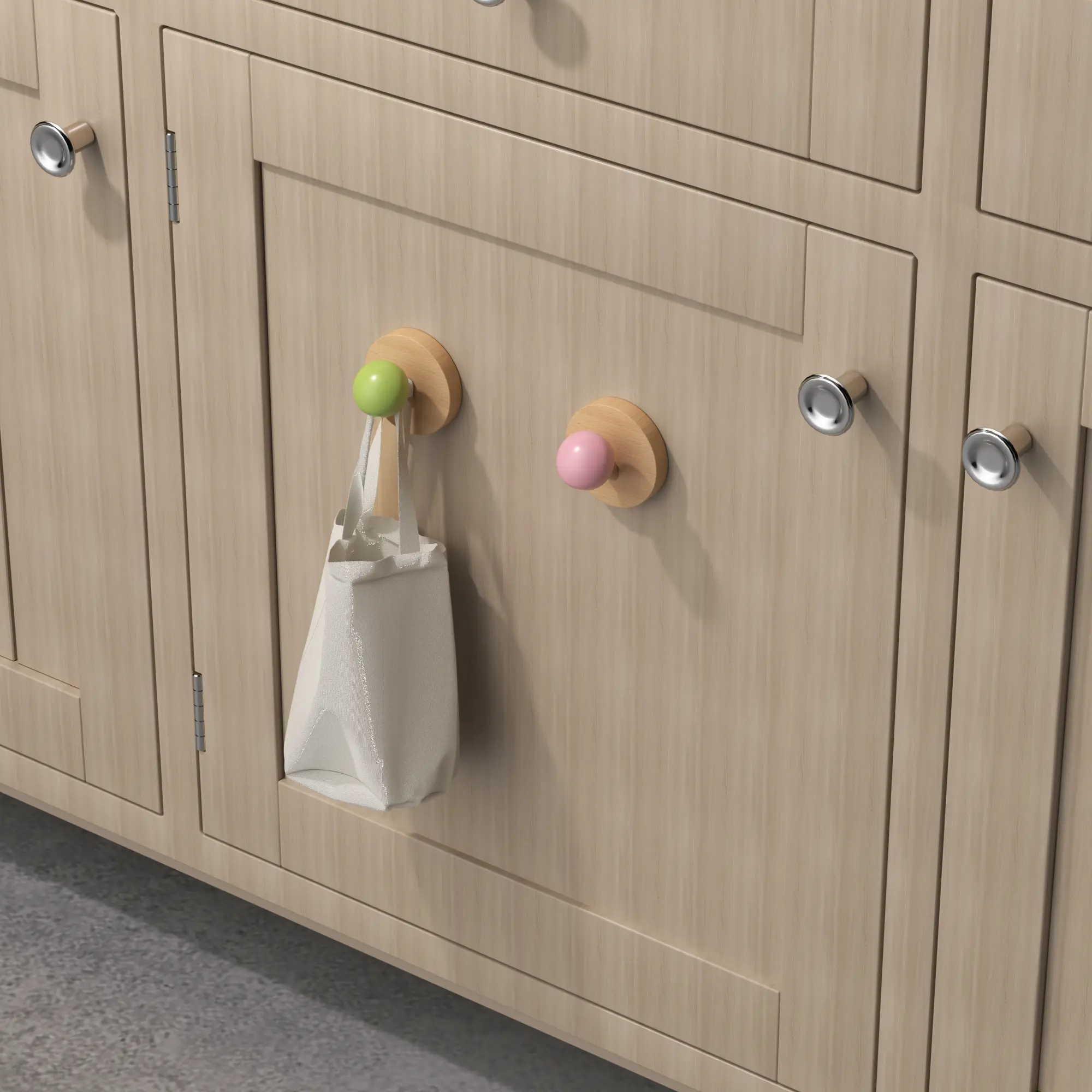 2 Non Perforated Solid Wood Beech Mushroom Hooks with Strong Adhesive and Seamless Installation, Wall Mounted Multifunctional Storage Hooks Suitable for Creative Adhesive Hooks Behind Doors/Entrances/Bathrooms