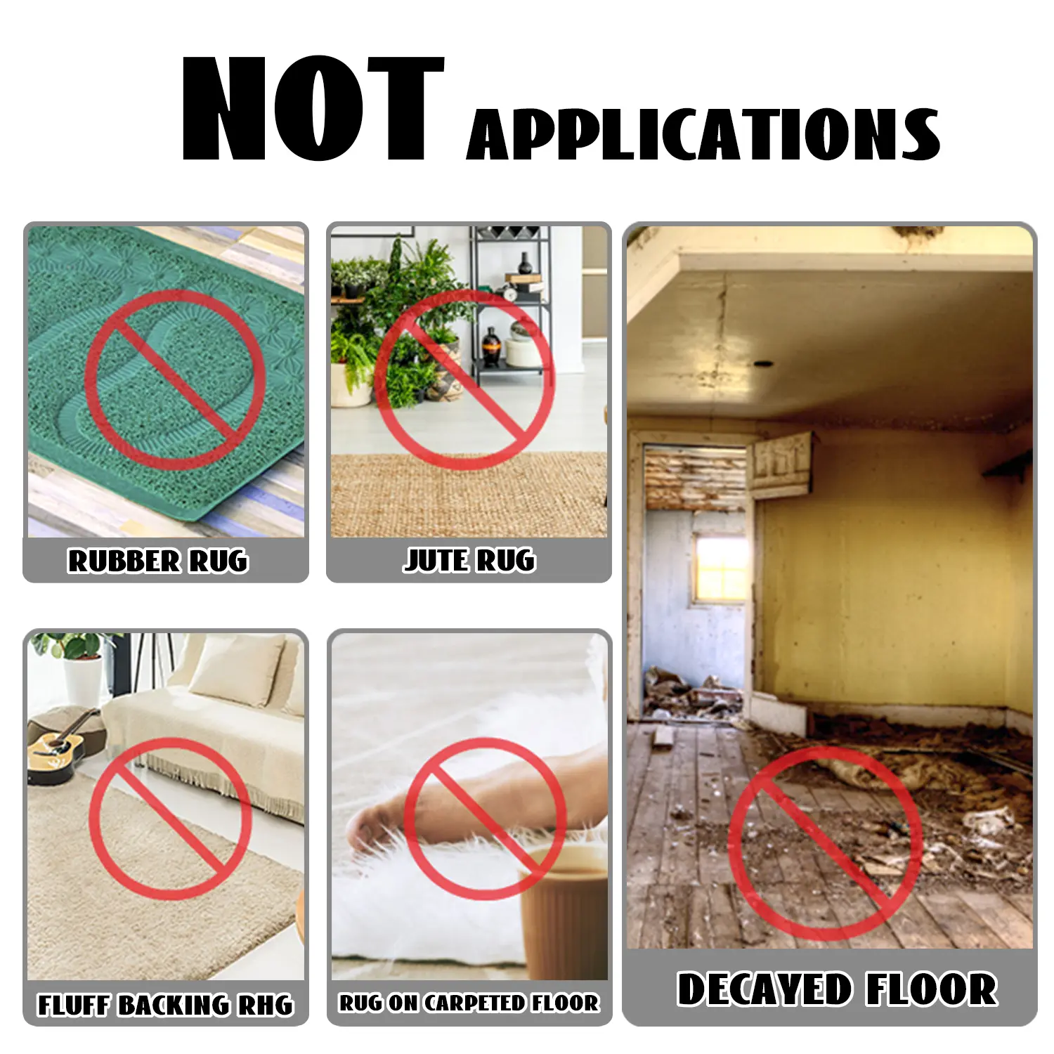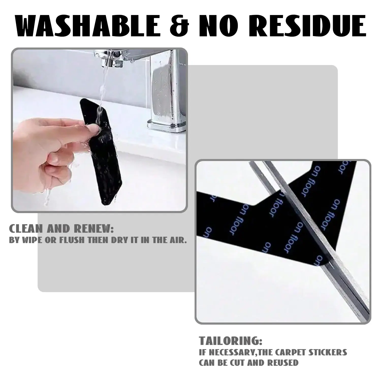 Strong Grip Without Residue: High-friction silicone grips rugs/furniture up to 15kg, leaves no sticky marks when removed.