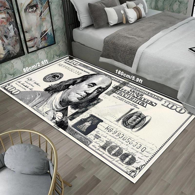 100 Dollar Pattern Carpet, 1 Count Non-slip Soft Floor Mat, Modern Abstract Rug, Rectangle Home for Living Room Bedroom
