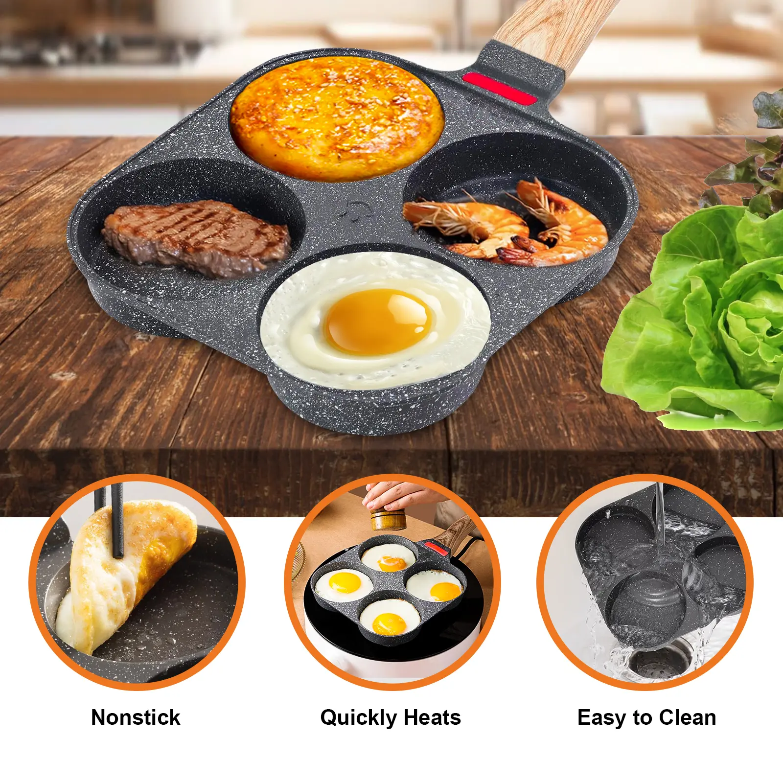This is the ultimate in a frying pan. I made mcgriddles for the first time using it. What a great idea for the design.