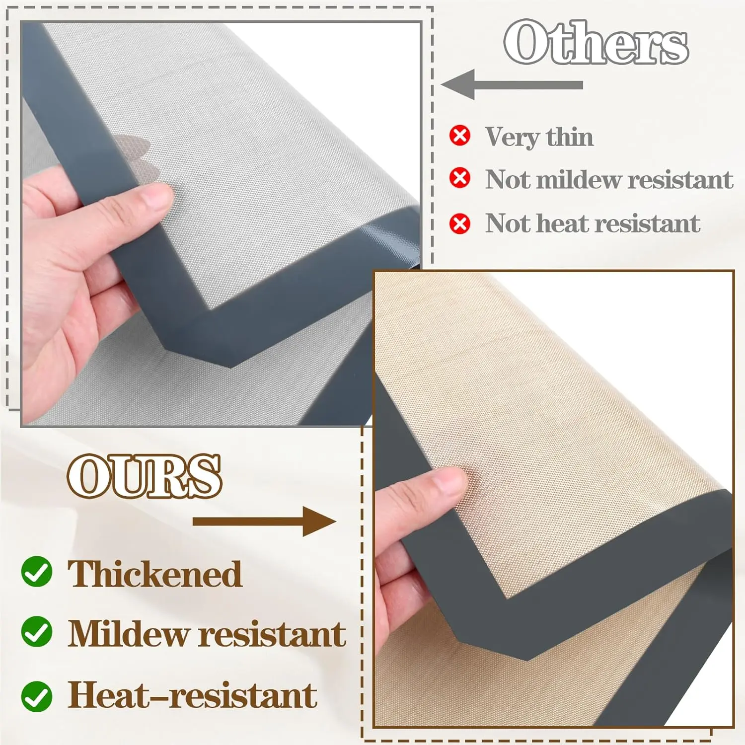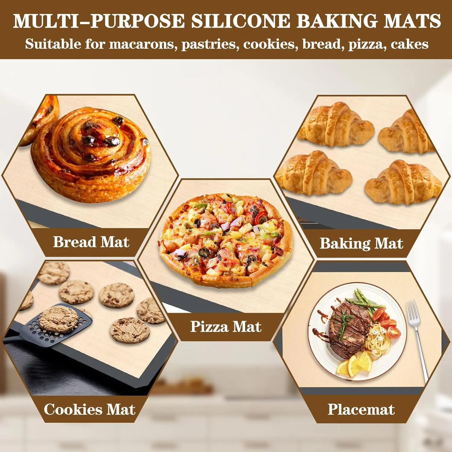 Each mat measures 16.5" x 11.6" (42 × 29.5 cm), perfectly fitting standard baking sheets and ovens. Heat-resistant up to 480°F (250°C), they are safe for oven, microwave, and even freezer use.