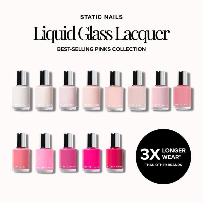 Static Nails Liquid Glass Lacquer is a breakthrough, non-toxic formula loaded with rich pigments and natural antioxidants for a healthier manicure that actually lasts up to 10+ days without chipping when paired with Static Nails Liquid Glass Primer and Top Coat.