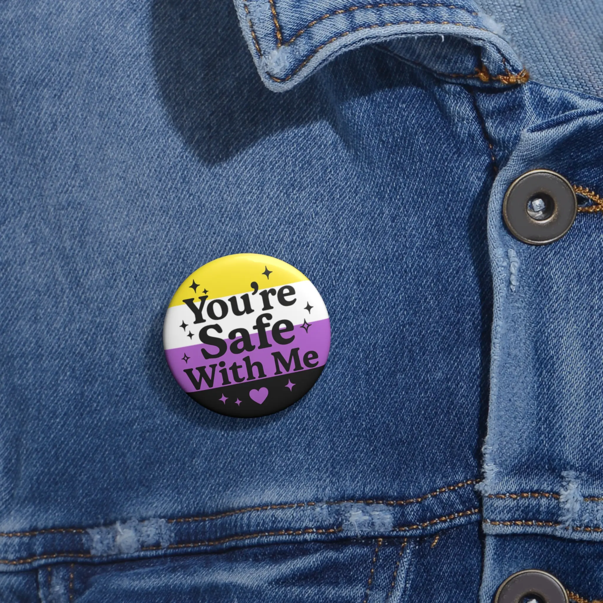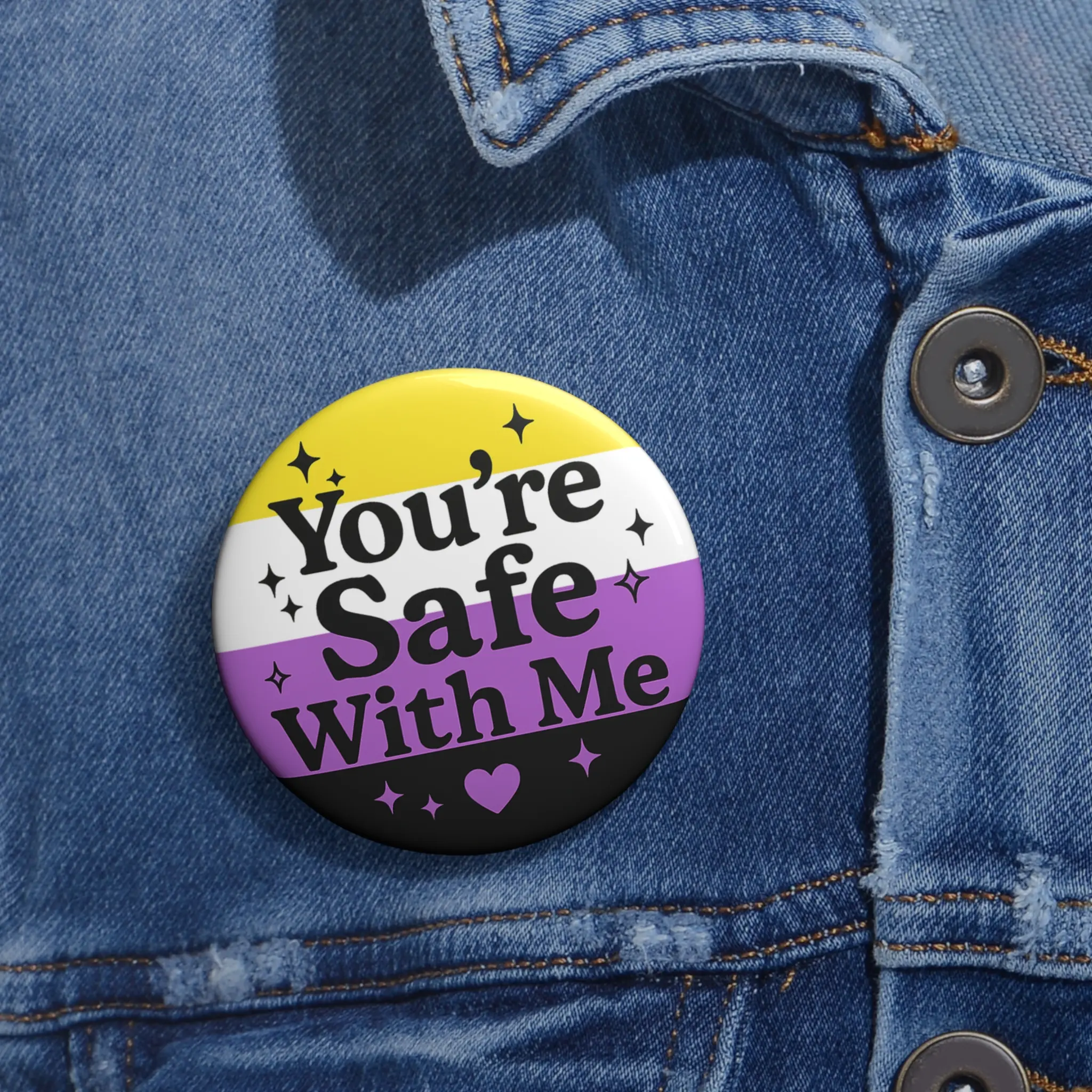 💛 You're Safe With Me – Nonbinary Pride Button 💜