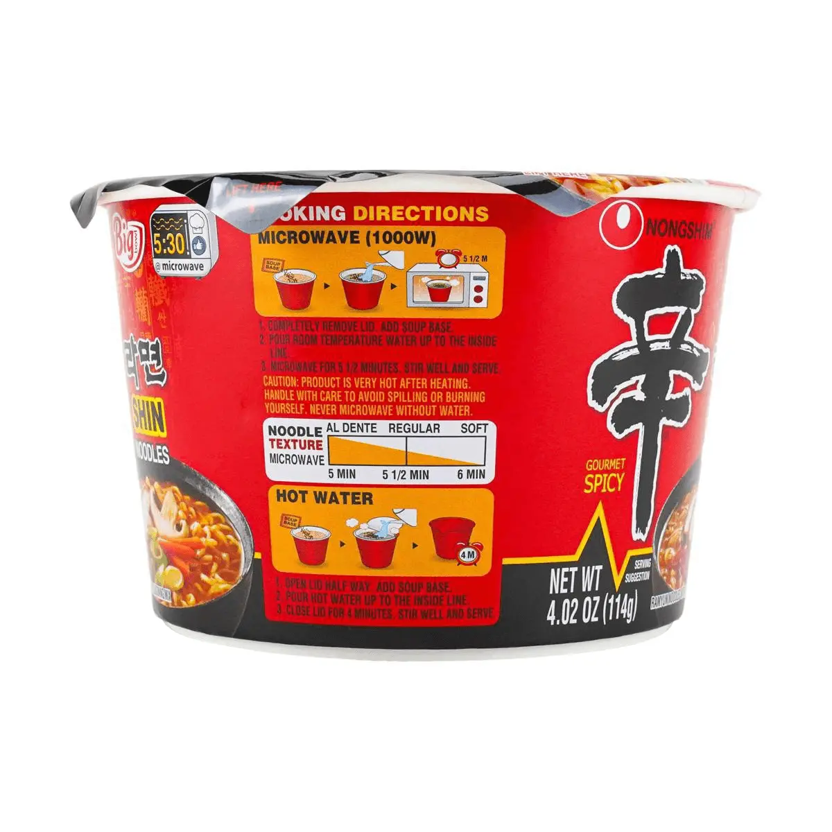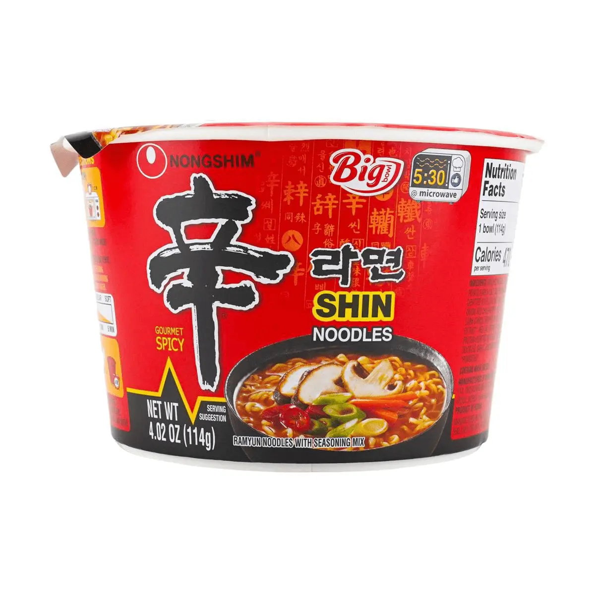 Nongshim Shin Ramyun Instant Noodles - Spicy Korean Ramen Bowl (114g) - Classic Flavor, Extra Large Size, AESPA Official Pick