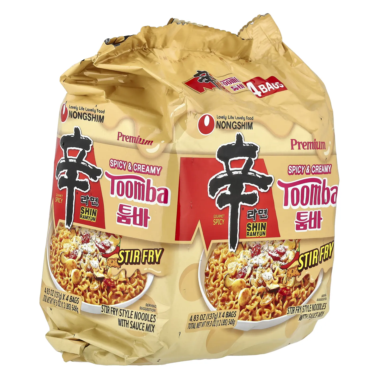 Nongshim Premium Shin Ramyun, Toomba, Spicy & Creamy, 4 Bags, 4.83 oz (137 g) Each