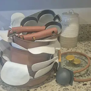 First impression of the pans when unboxing they look very sturdy. We haven't used yet but the spatula is cracked and doesn't look put together as well as the ladle. I will bump up to 4 stars due to the quick response of the company on resolvingthe issues when I get replacement I will update. To 5