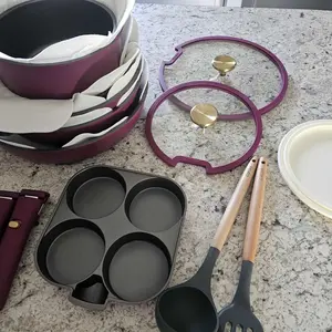 Wow what a pretty color I did bought 2set in different colors, but I am using this set so far are great went I’m cooking, reasonable price to me I did bought them on sale,, fast delivery, great packaging, and performance so far is good , clean easy