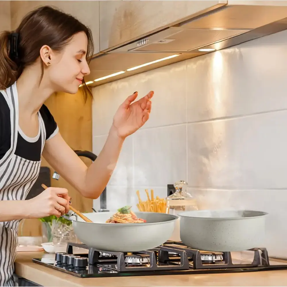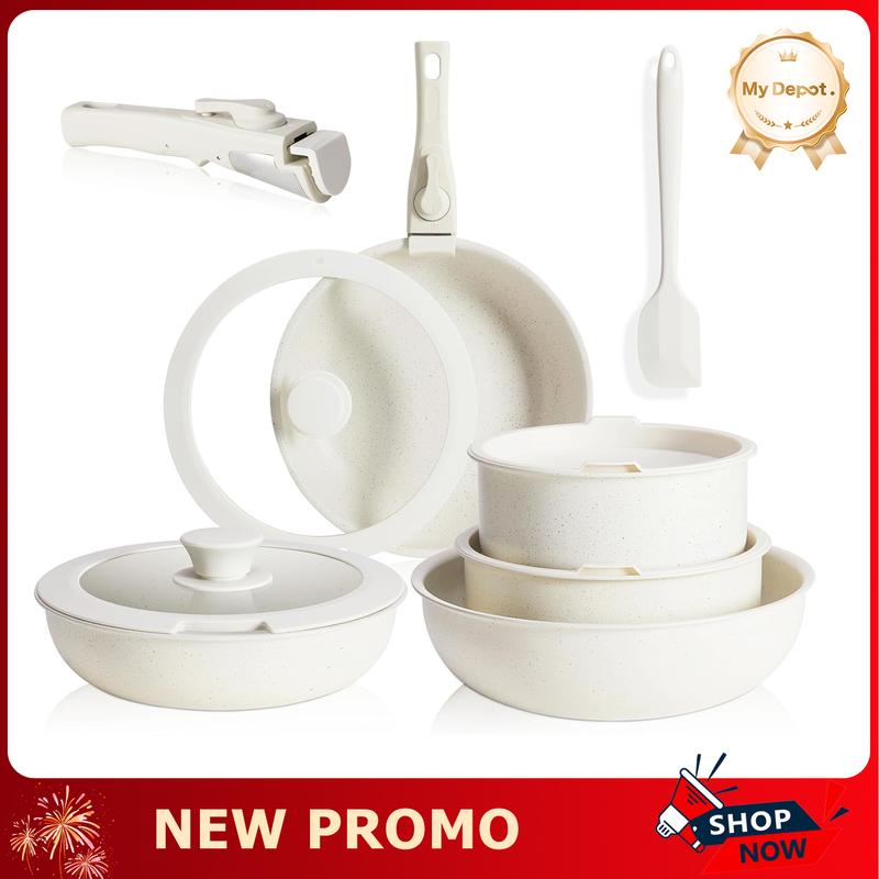 ·This cookware set features detachable handles, perfectly designed to handle hot pots and pans safely. The unique design allows for easy and secure handling while cooking, ensuring you a hassle-free cooking experience.