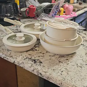 ·Made with non-stick granite, the cookware set promises easy and effortless cleaning. The unique granite material prevents food from sticking to the surface, reducing the need for oil and making your meals healthier and clean-up faster.