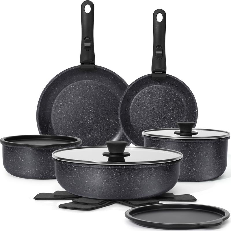 ·Naturall Nonstick Coating - Granite non-stick of pots and pans set is healthier and scratch-resistant with excellent food release. Cooking requires less oil for a healthy, low-fat diet.