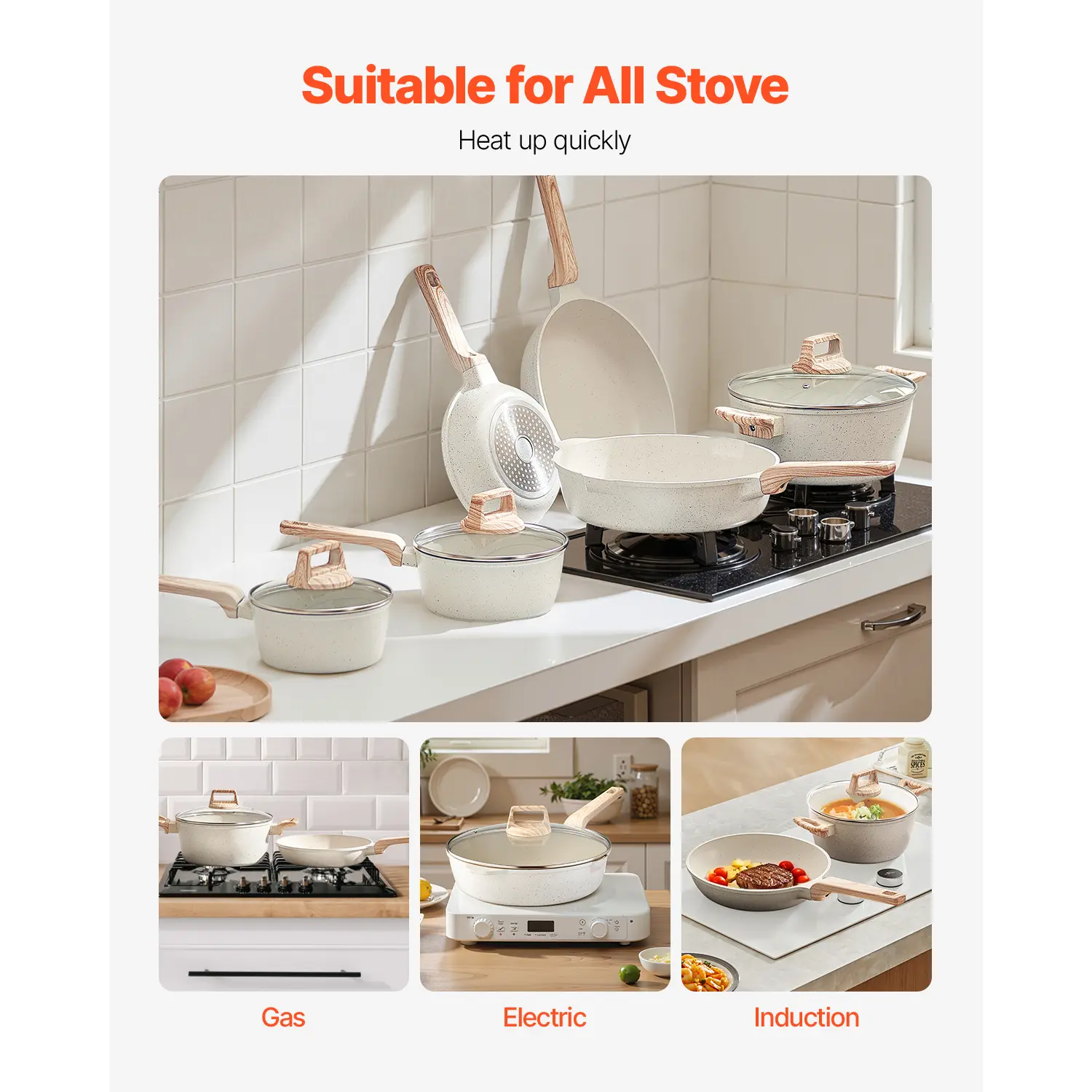• Premium Material: Made with a Maifan stone non-stick coating, this cookware set ensures easy food release and effortless cleaning. The interior withstands temperatures up to 380°C, making it reliable for daily use. The cookware does not include lead, cadmium, and PFOA. Cook with less oil for a healthier meal experience