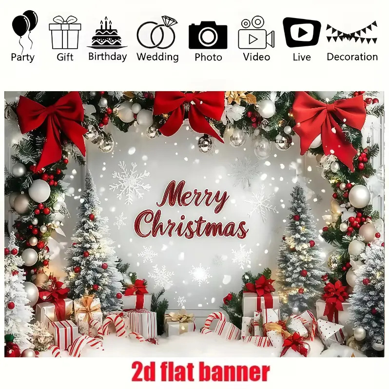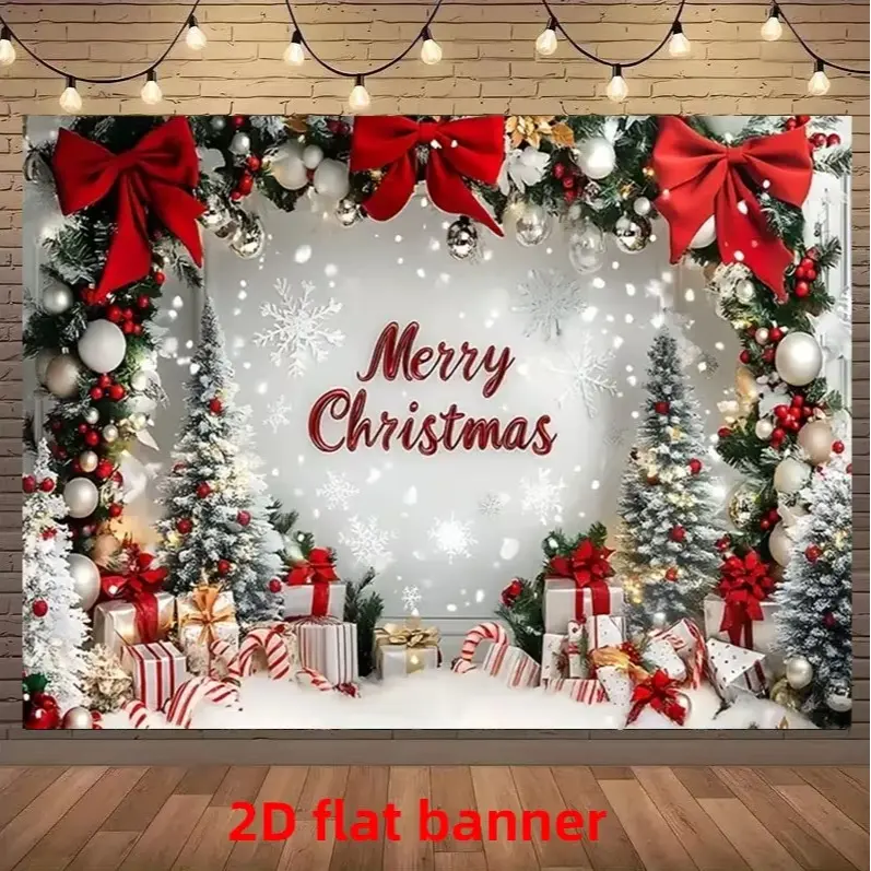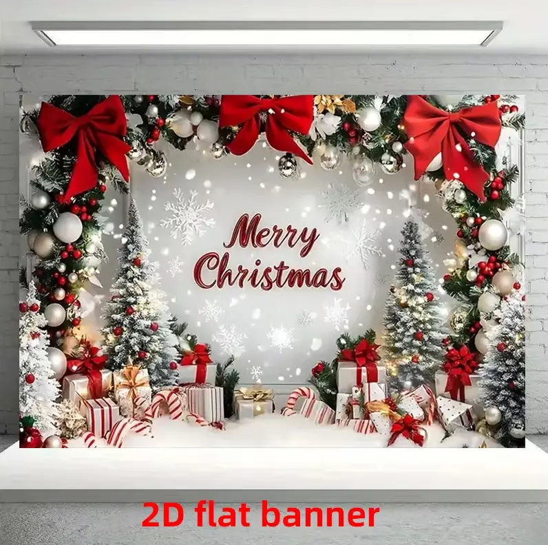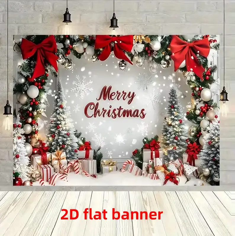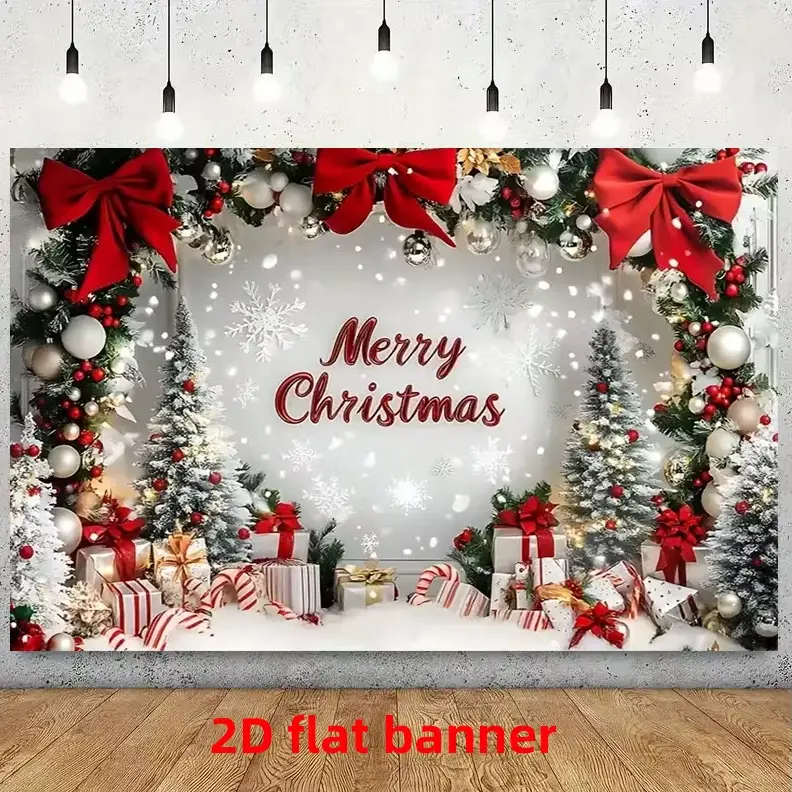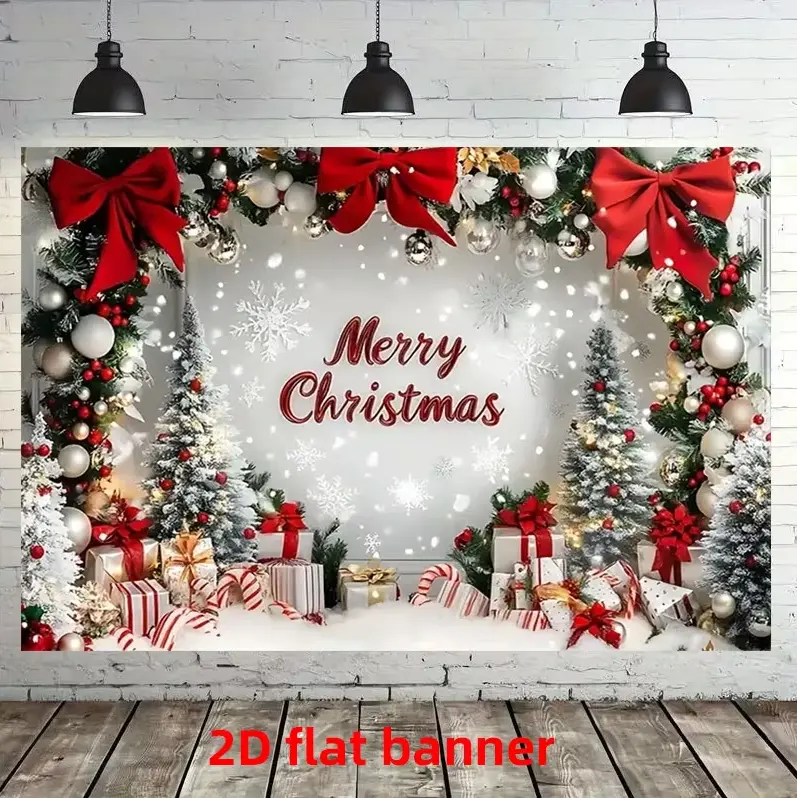 ·Design Features: This 2D flat banner showcases snowflake, Christmas tree, and gift designs. Perfect for enhancing the ambiance of any indoor space. 🌨️🎄🎁