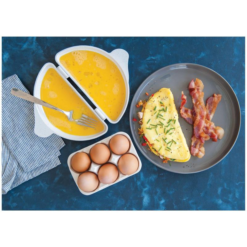 Cook fluffy, delicious omelets in just minutes with this handy kitchen tool. Simply crack two to four eggs, add your favorite fillings, microwave, fold, and enjoy! From Nordic Ware.