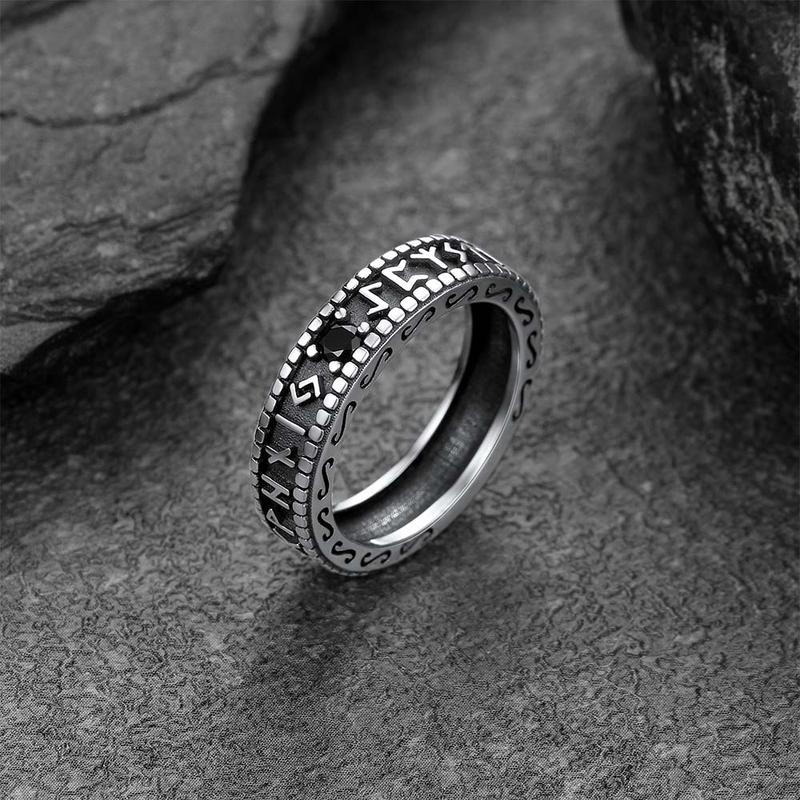 FaithHeart Norse Runes Ring with Black Onyx For Unisex