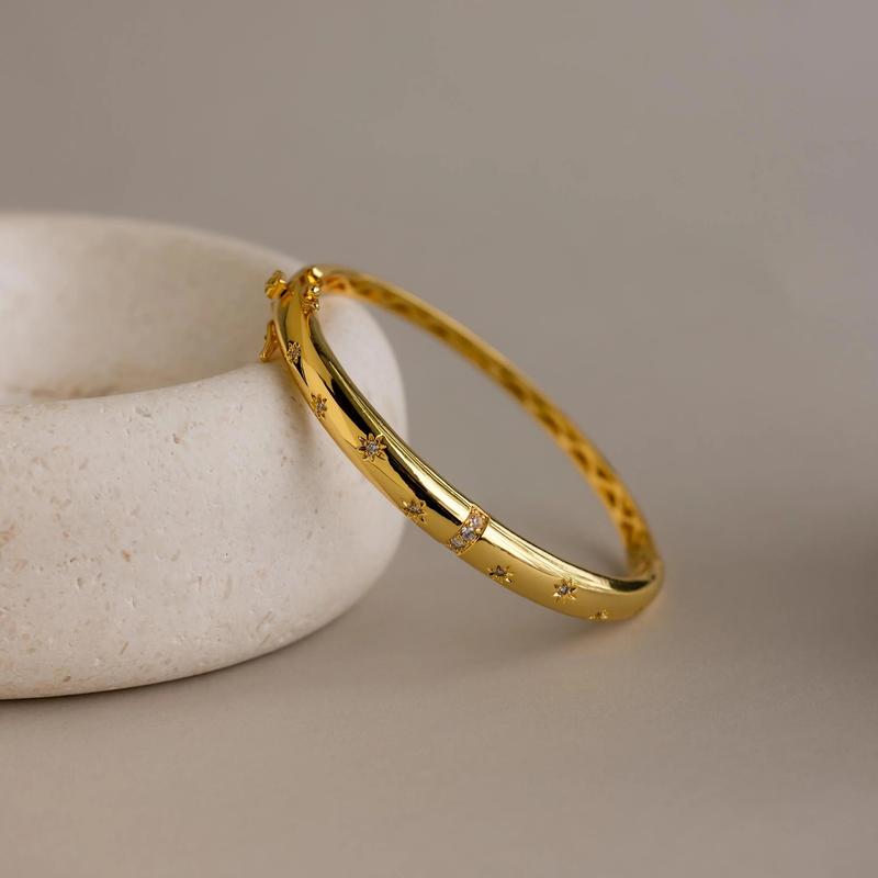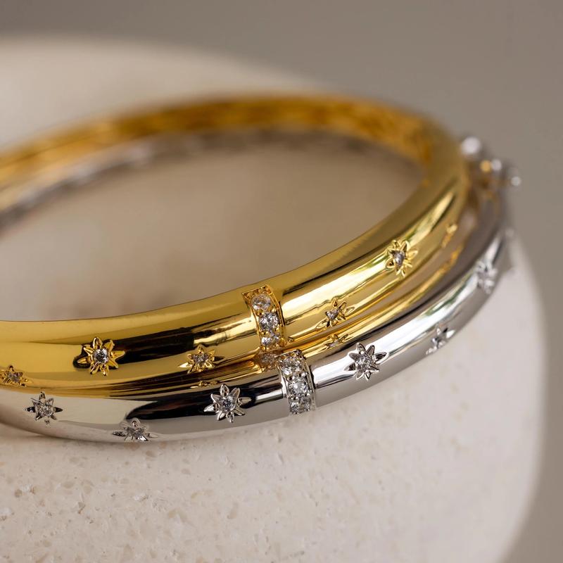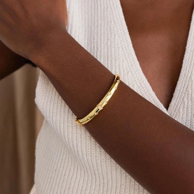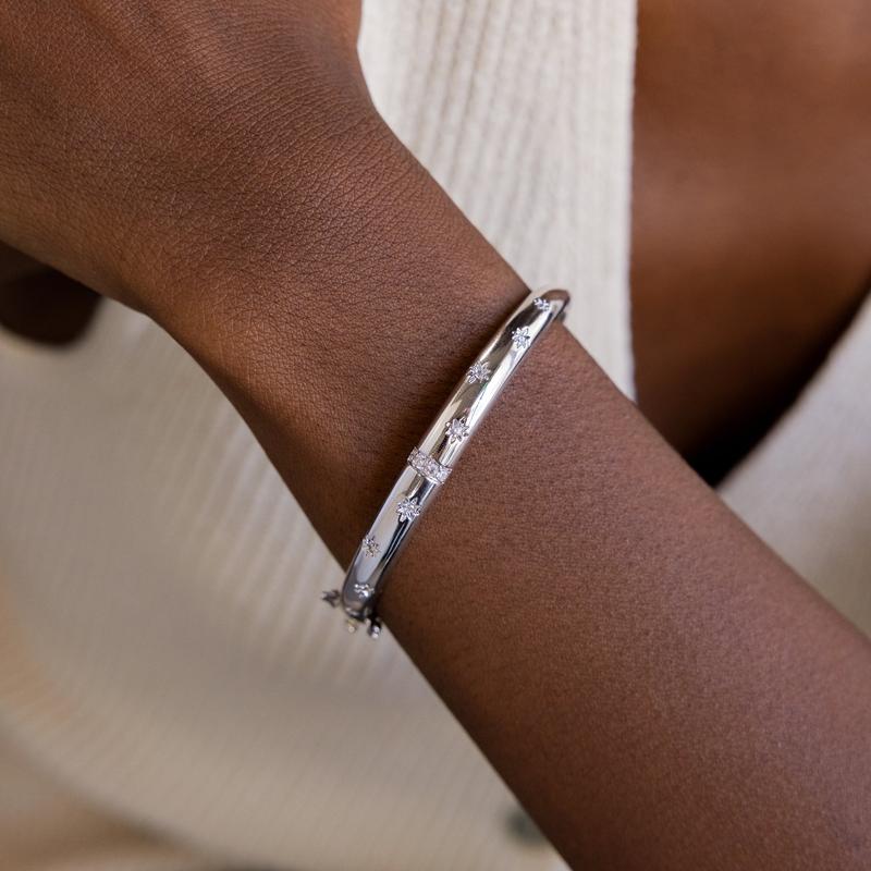 Make a stellar statement with our North Star Bangle Bracelet, a chunky dome bracelet featuring radiant diamond-set stars. Bold, dreamy, and full of celestial charm, this piece is made to shine solo or stack with your favorites. A meaningful gift for someone who lights up your world!