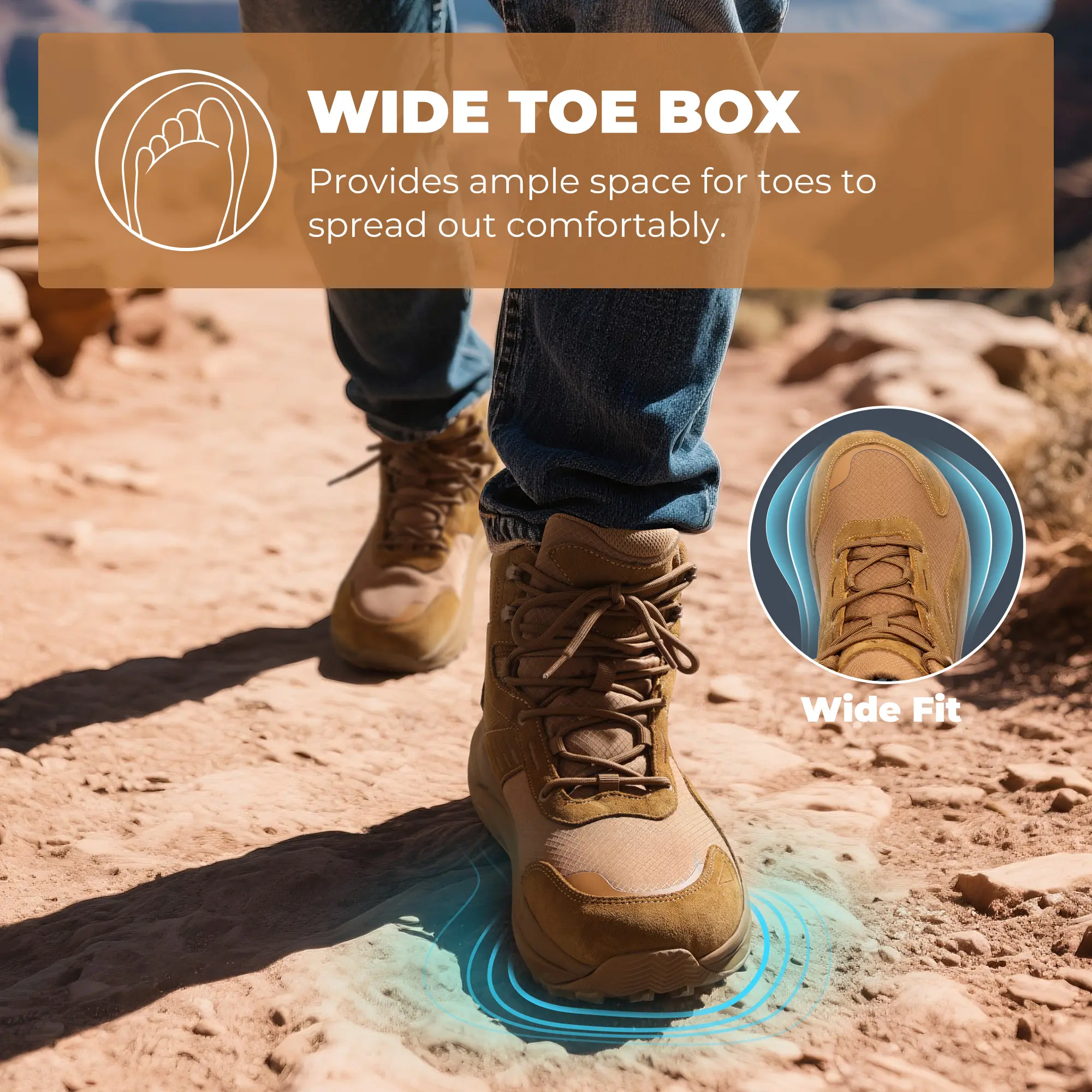 ·Roomy Toe Box: These men's hiking boots feature a wide toe box that provides more space for toes to spread naturally, improving walking balance and overall foot health.