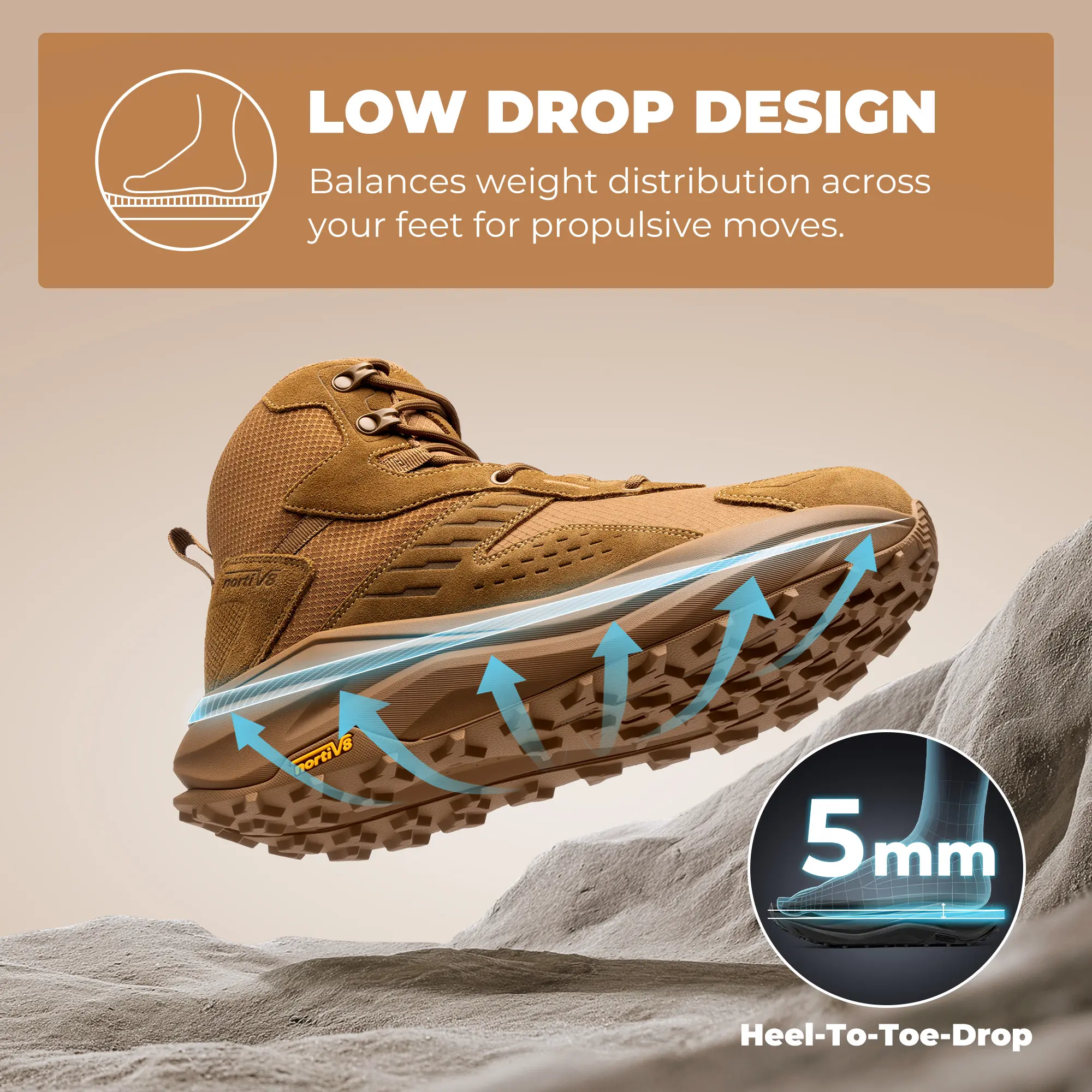 ·Low Drop Design: With a 5-mm heel-to-toe drop, these waterproof hiking boots for men keep your feet in a natural position while balancing weight distribution and reduces pressure on the forefoot.