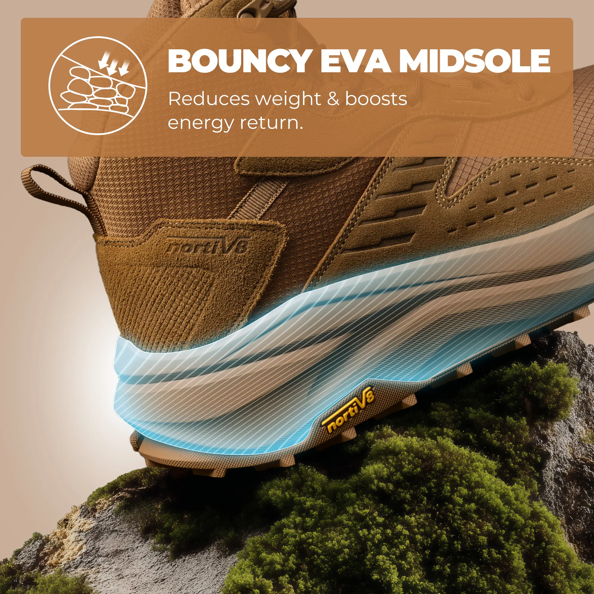 ·Comfortable & Slip-Resistant: These men's boots boast a thick EVA midsole that offers bouncy support with every step. The lugged rubber outsole ensures you stay grounded on challenging terrains.