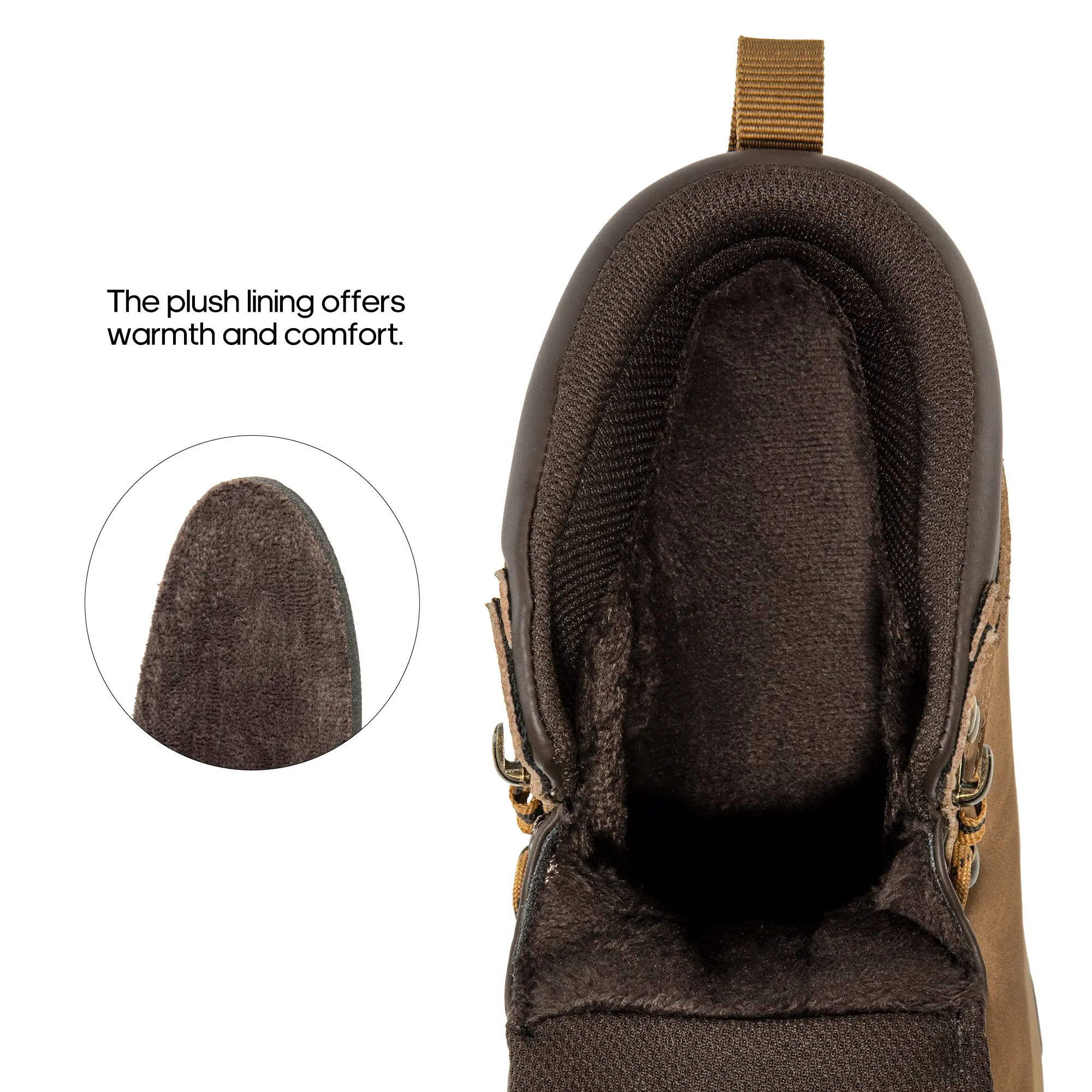 ❄️ Vegan Leather Upper: The upper of these men's winter boots offers durability and water resistance. It ensures longevity and protection against the elements. Perfect for all-season trekking and camping.
