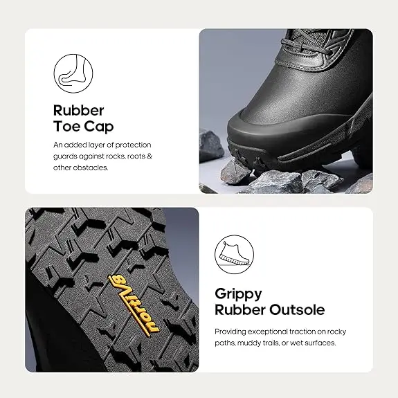·Advanced Outsole: The combination of EVA and rubber in the thick midsole provides optimal shock absorption. The rubber outsole, coupled with a unique tread pattern, delivers outstanding grip on various surfaces, making these men's boots perfect for outdoor activities.