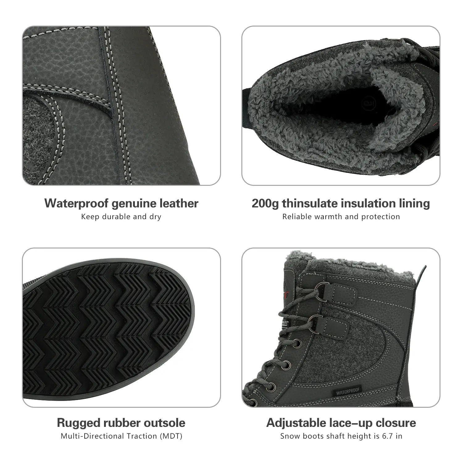 These men's waterproof snow boots are ideal for outdoor and indoor activities. Perfect for skiing, snowmobiling, fishing, mountaineering, camping, and more. Embrace nature and life-changing moments with easy stability. đïž