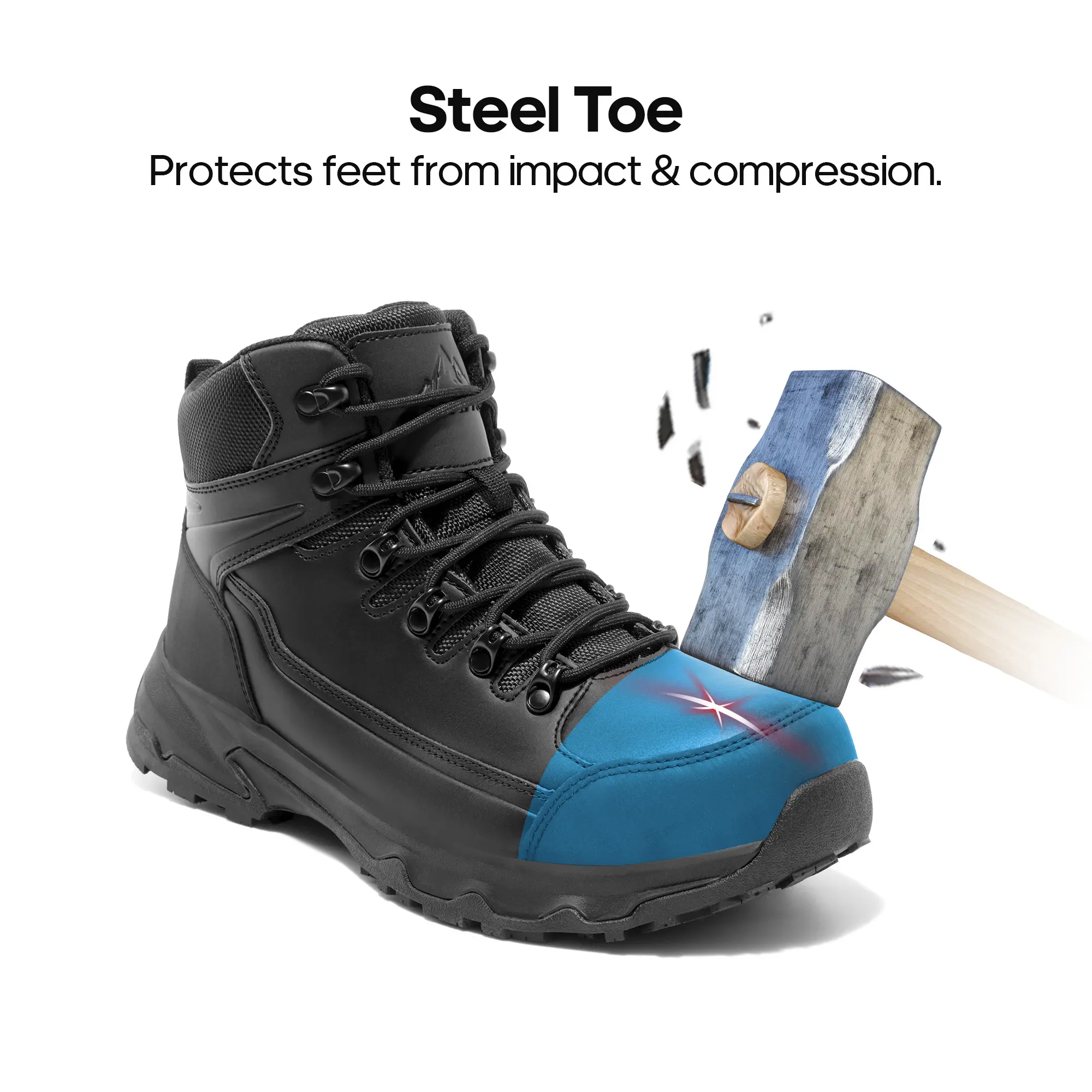 NORTIV8 Steel Toe Work Boots for Men Waterproof Slip Resistant Safety Construction Boots