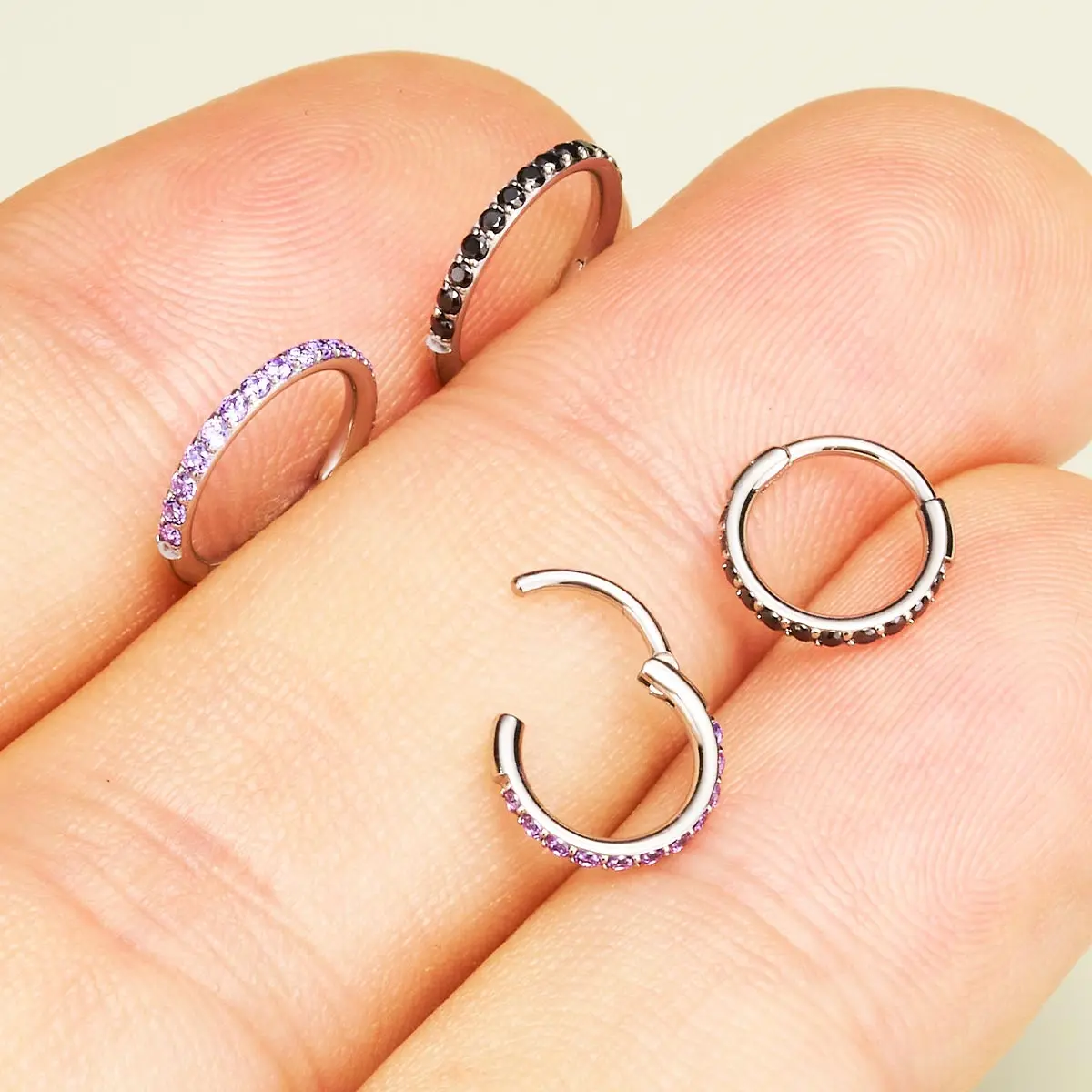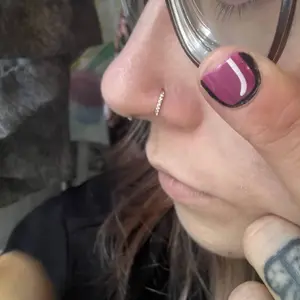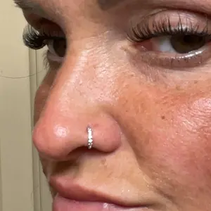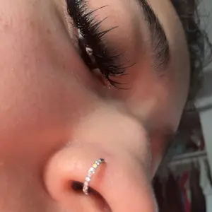 I love the my new nose hoop piercing! The diamonds are so pretty! 🤩 I will definitely be buying more and trying out the other color options! 10/10 would recommend