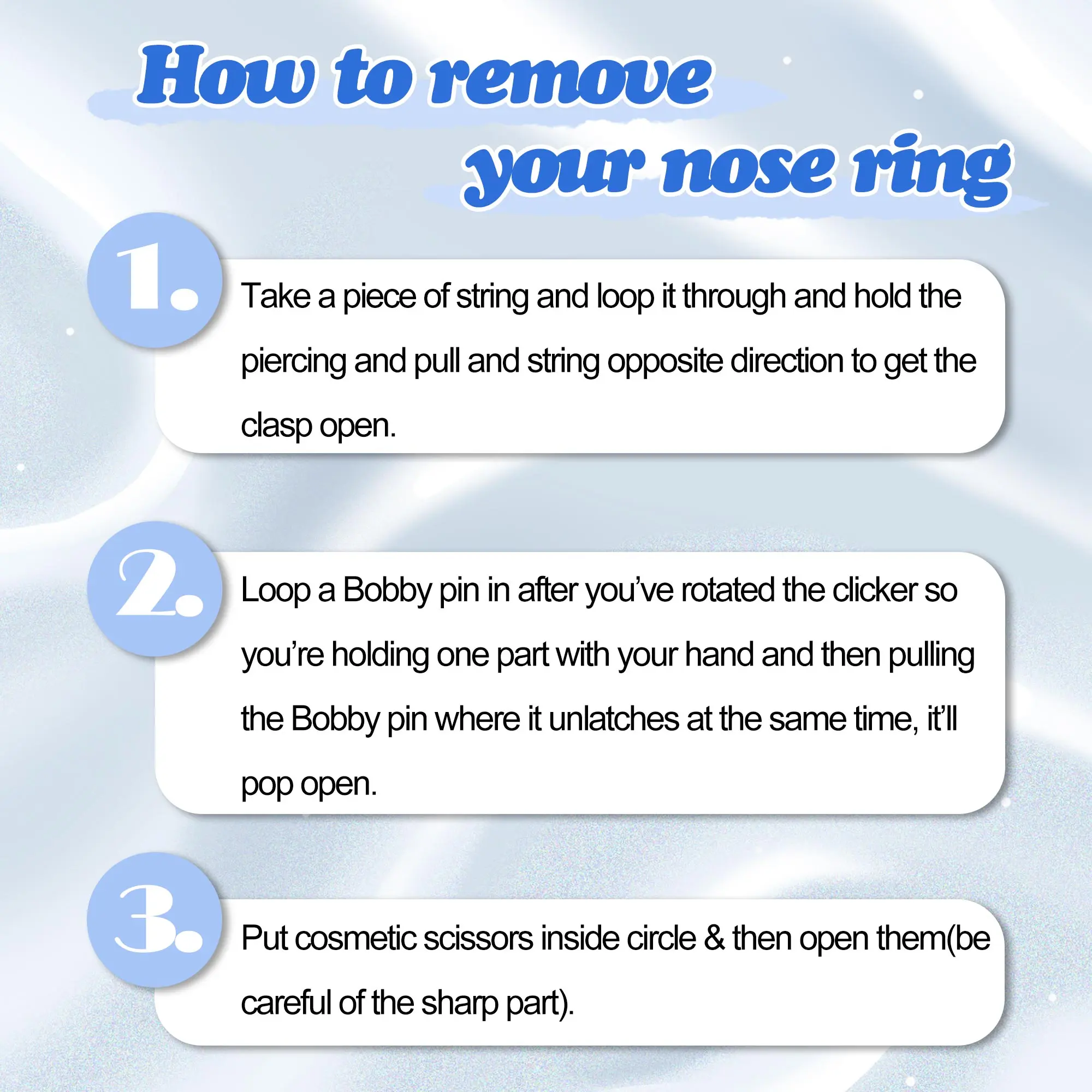 Don’t get me wrong its cute but the size made hard to find the other end to clip it close. I don’t know how others managed to fit the 5mm bc for me it was tight on my nose to the point where it was swelling n when I was trying to take it off it was hard to find the opening which stretched my whole.
