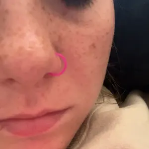 so cute and the perfect little pop of pink! my favorite part is that it’s not metal but like a super bendy plastic that doesnt hurt me if it gets caught on something or i get hit in the face lmao. 10/10 best nose ring ive had to date
