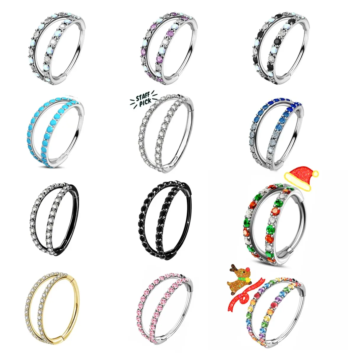 ·A safe choice for daily wear or as a thoughtful gift. Try the Oufer micro gem CZ hinged double row nose piercing hoop today!