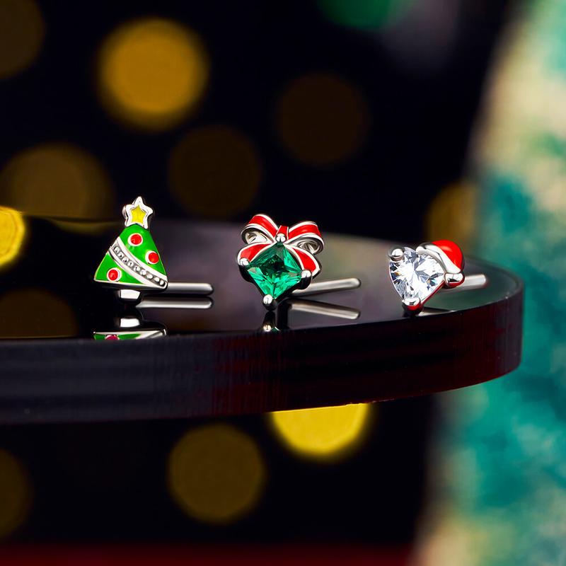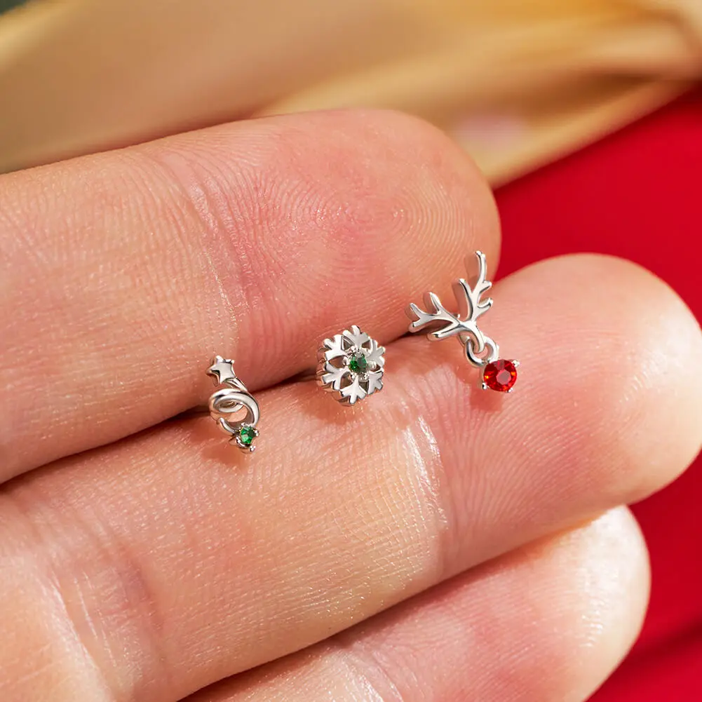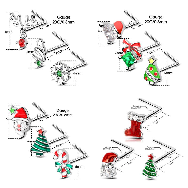 Oufer Christmas3PCS 20G Christmas L-shaped Nose Piercing Ring Set with Santa Boots Tree Cubic Zirconia for Festive Holiday Wear