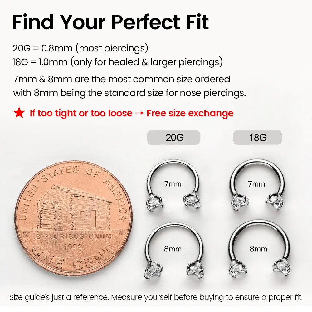 Β·Gauge size: 20G (0.8mm/Slim fit) ο½ 18G (1.0mm/Thicker fit)