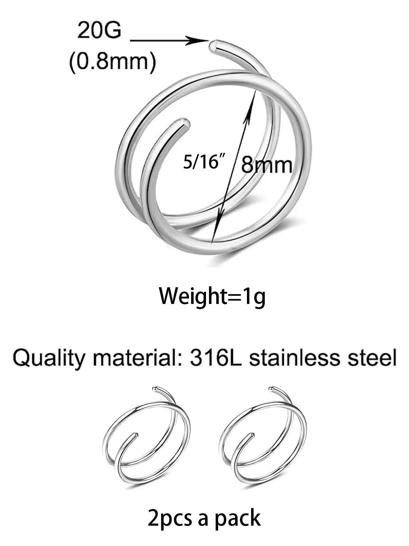 ćUniversal Fitć: With an 8mm size, these nose rings comfortably fit a wide range of individuals without the need for custom sizing.
