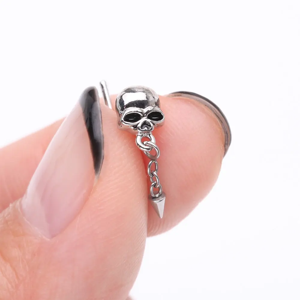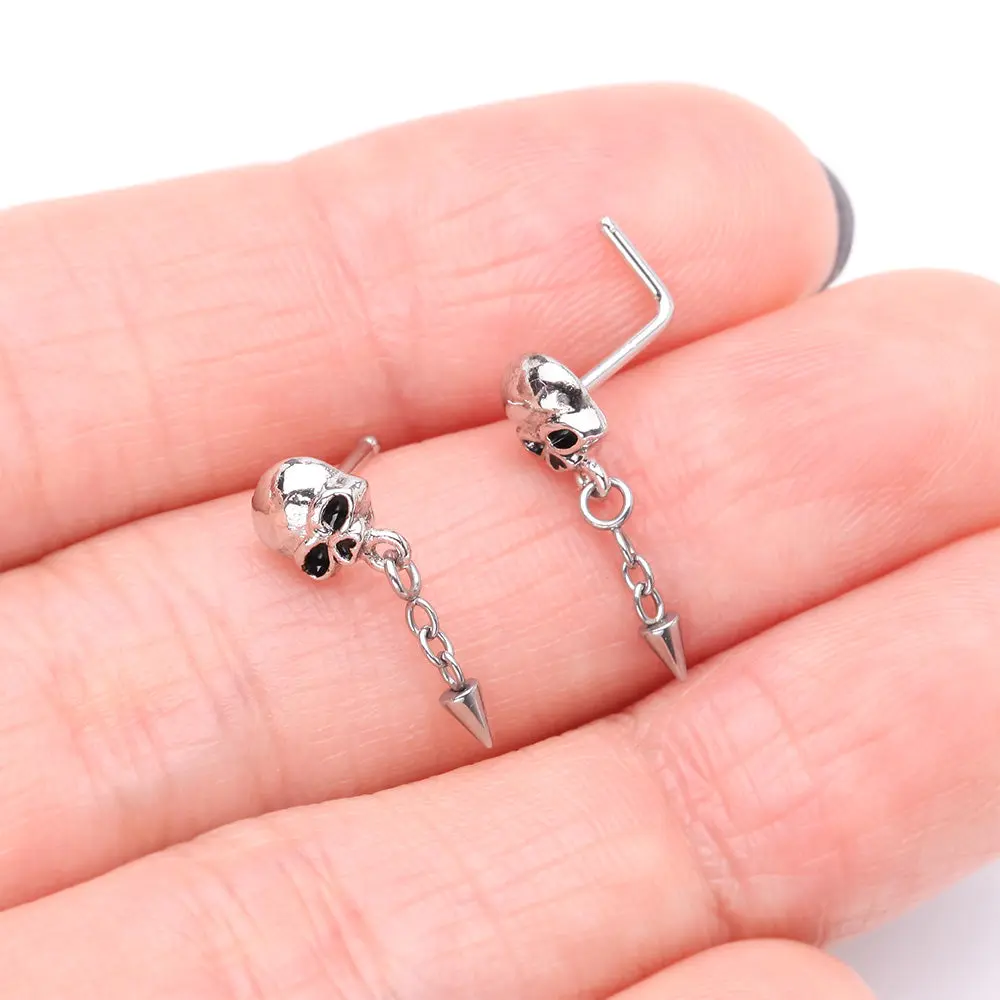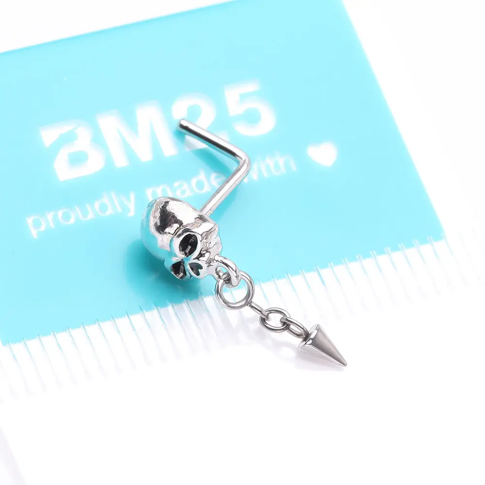 Death Skull Dangle Chained Spike L-Shaped Nose Ring