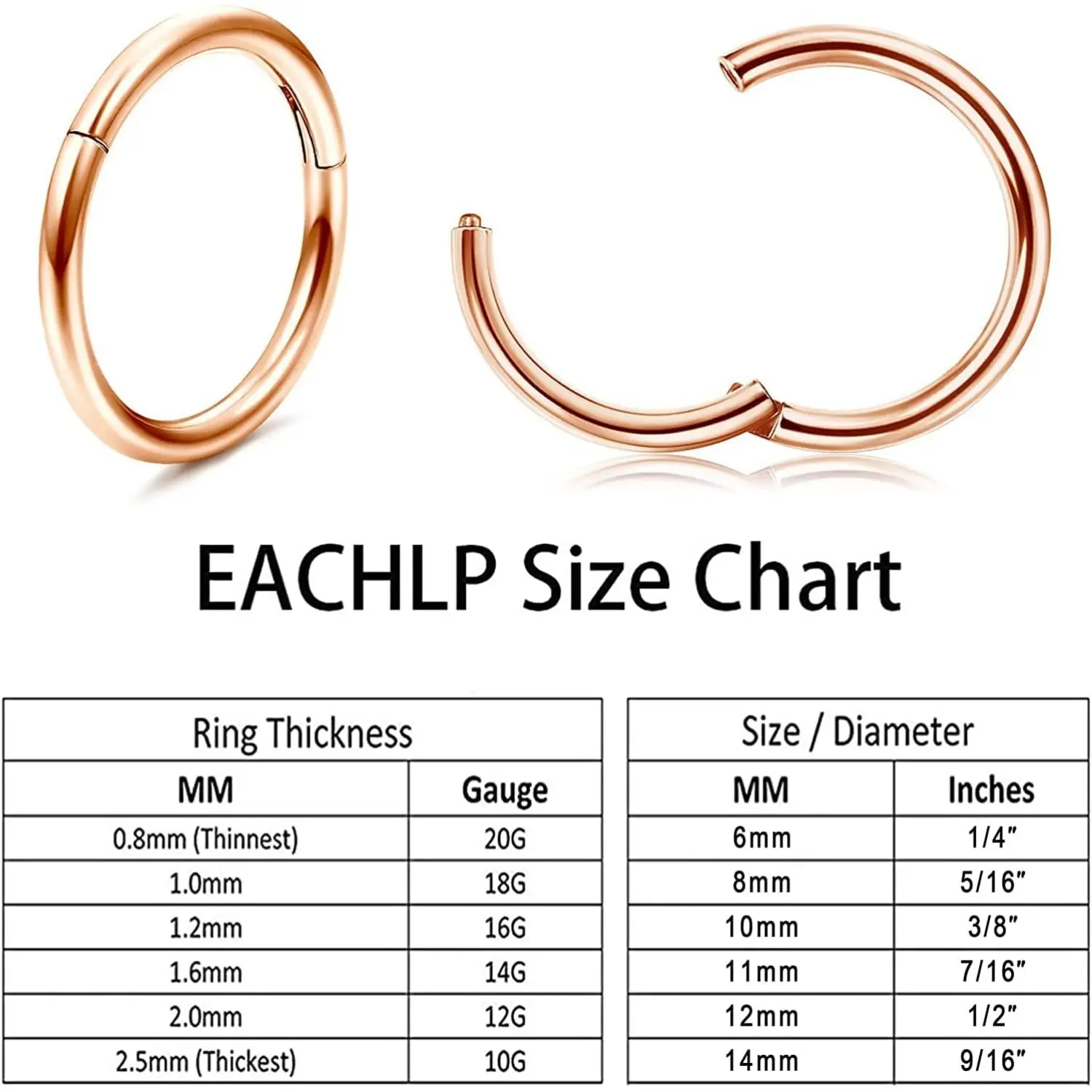 【Hinged Segment Nose Ring】: Click closure, easy to open and close the click closure by hand, not require a tool, used the latest production process to strictly control the quality, hinged section pulls open and snaps close for easy insertion into piercing, needn't to worry about lost when bathing, walking or exercising