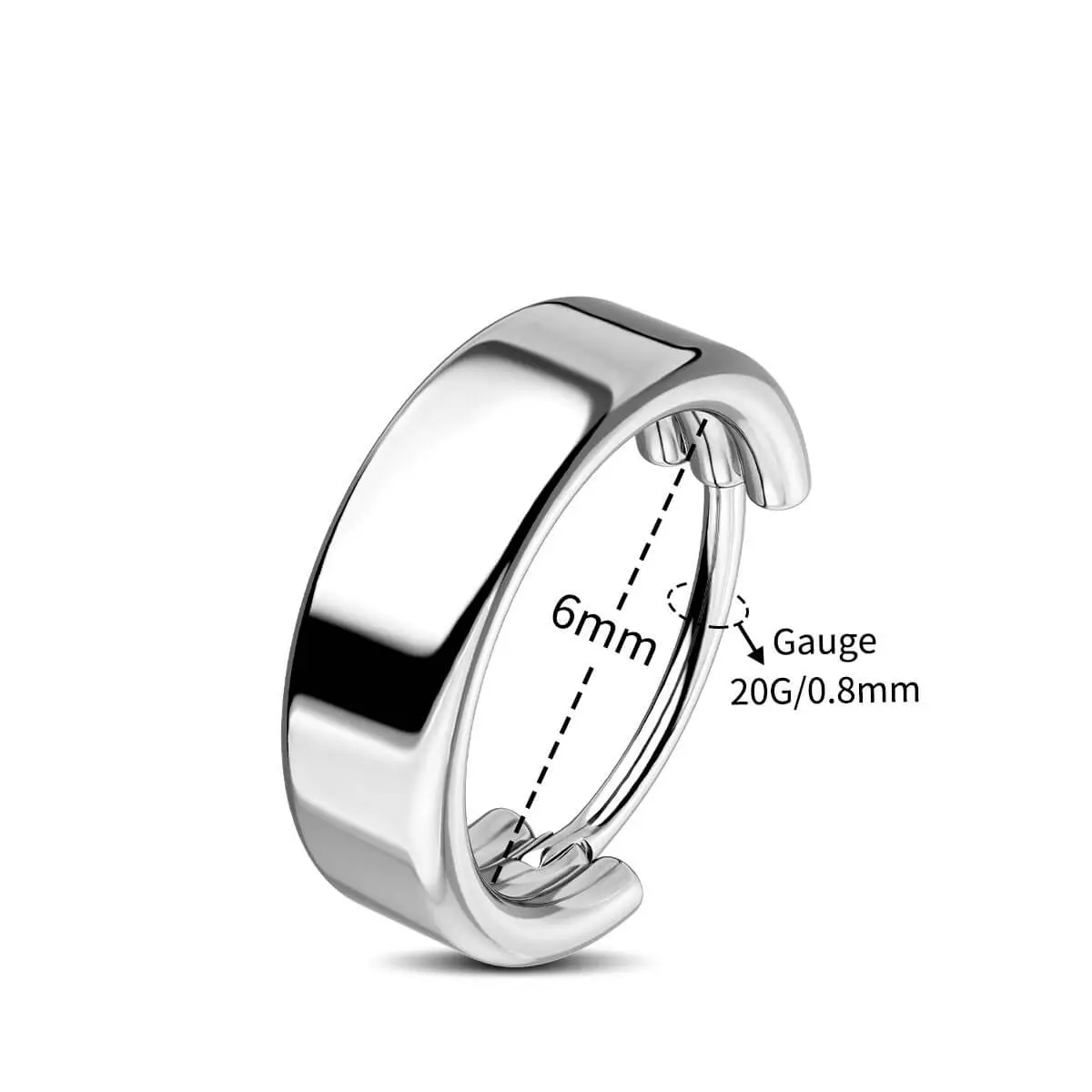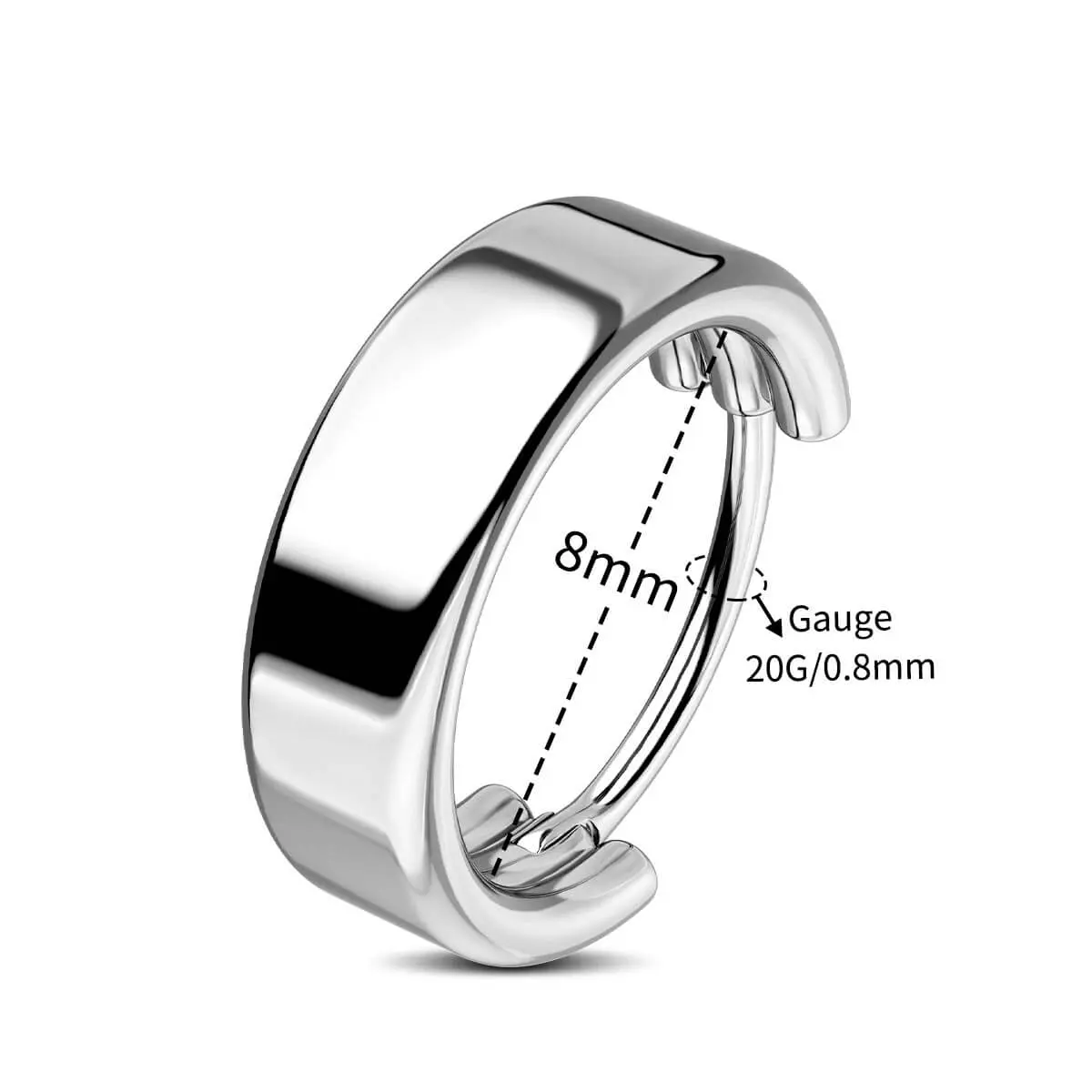 Made of 316L stainless steel. Hinged segment hoop. Bar Thickness: 20G=0.8mm, Inner diameter: 6mm and 8mm.