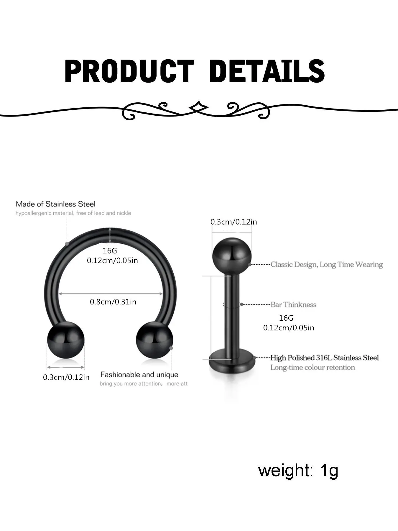 I purchased these nose piercings. They’re supposed to be hearts, but they’re so tiny. You can’t even really tell here are two pictures for the price. It’s OK I’m not disappointed, but I just wish the heart was a little bit bigger.
