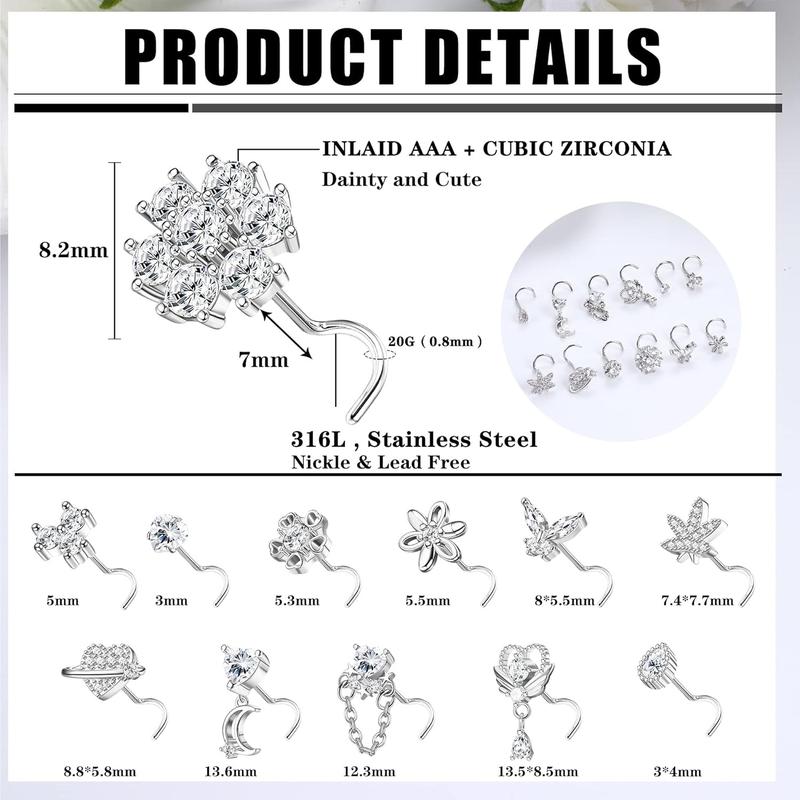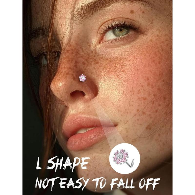 ·Material: These 20g nose studs made of high-quality 316L stainless steel pins and AAA+ cubic zirconia, exquisite and shiny, lead and nickel free, hypoallergenic, highly polished. L-shaped designs make nose jewelry easy to insert and comfortable to wear