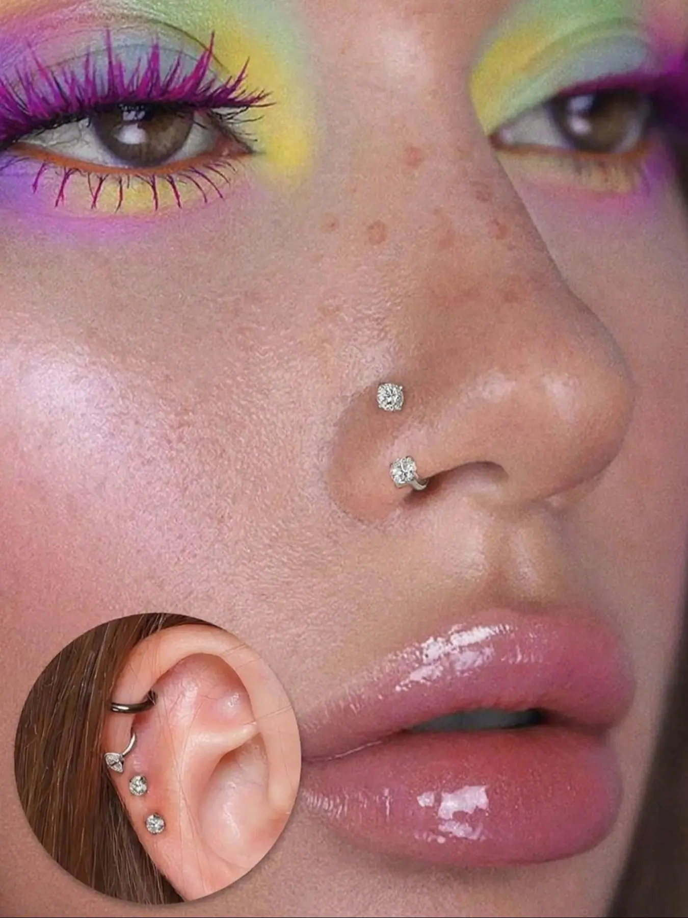 1st stud in top left picture,it doesn't go in the hole! You have to like push, like your stretching your nose hole! Don't recommend