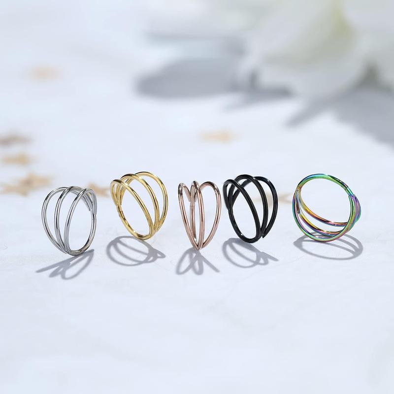 FASACCO 5 Count 20G 18G 16G Nose Rings Hoop Set Double Triple 316L Surgical Steel Nose Hoop Helix Septum Piercing Cartilage Hoop for Women TrendyFASACCO 5 Count 20G 18G 16G Nose Rings Hoop Set Double Triple 316L Surgical Steel Nose Hoop Helix Septum Piercing Cartilage Hoop for Women Trendy