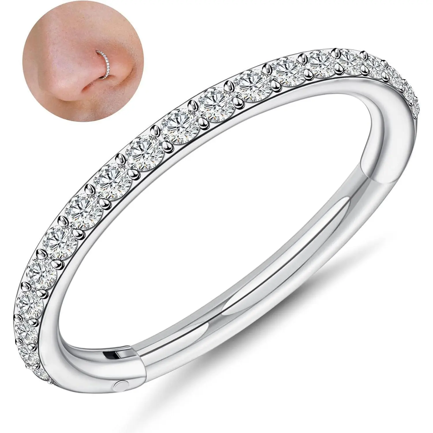 [Highlight Beauty]:Inlaid with clear CZ gives the nose hoop a shiny and sparkle look on your ear or nose, the classic color and minimalistic desigrgn can be used as gift for wife, girlfriend, boyfriend, sisters, brothers, mother and friends on anniversary, christmas, birthday, party or other occasions