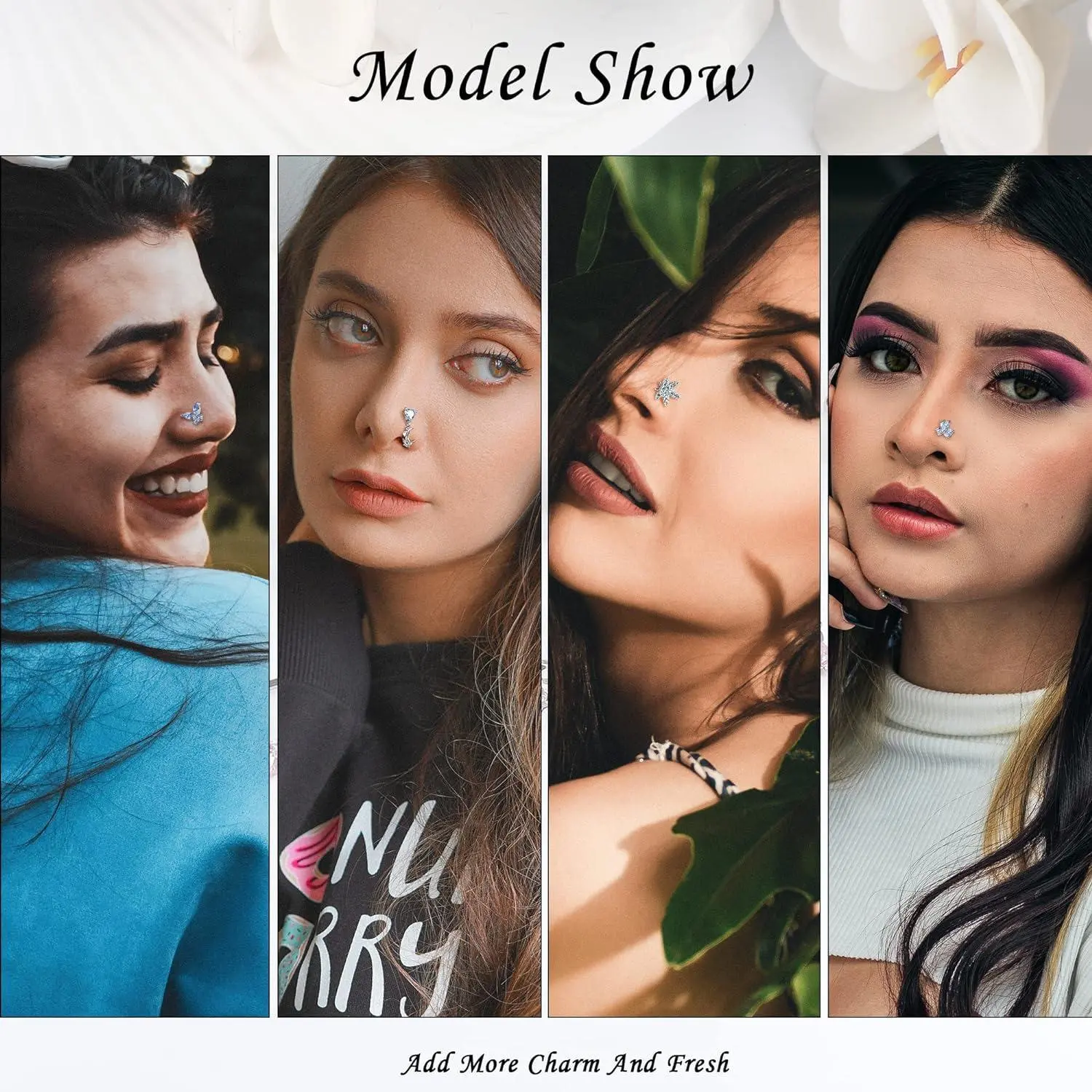 The set includes 12 options to match different outfits and occasions. Each design ensures long-lasting use. The stainless steel material guarantees durability. These nose rings are easy to wear and remove, making them a versatile choice for women.